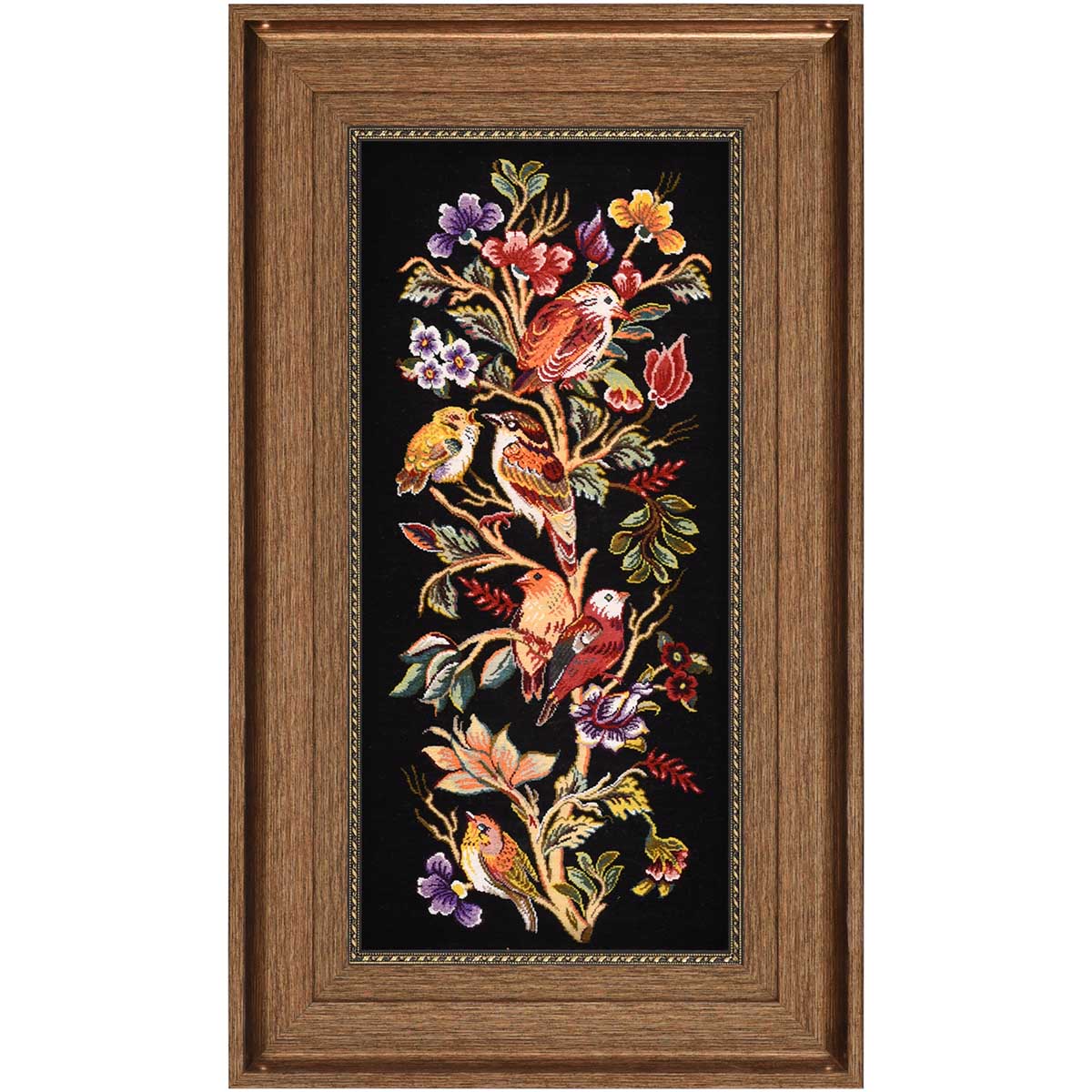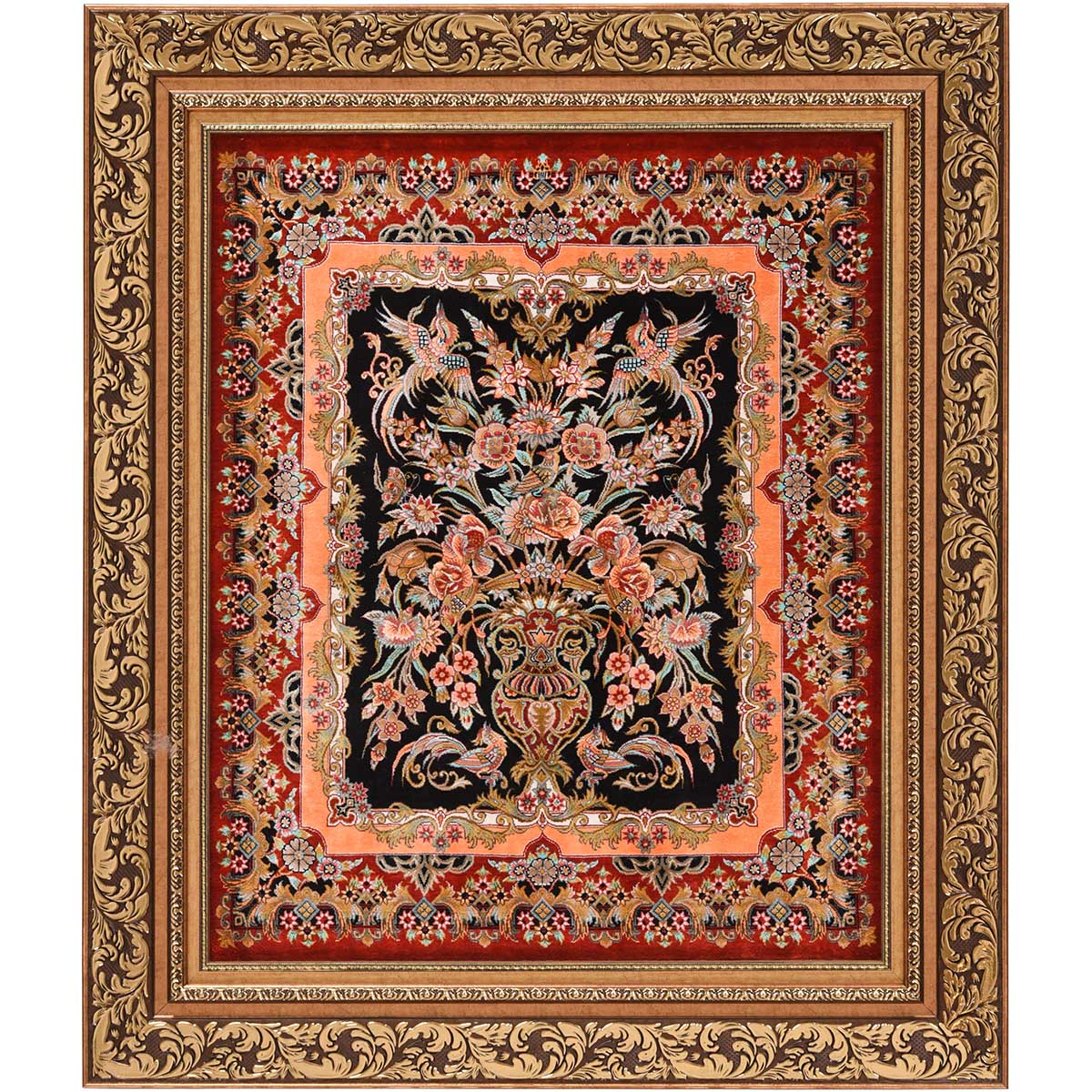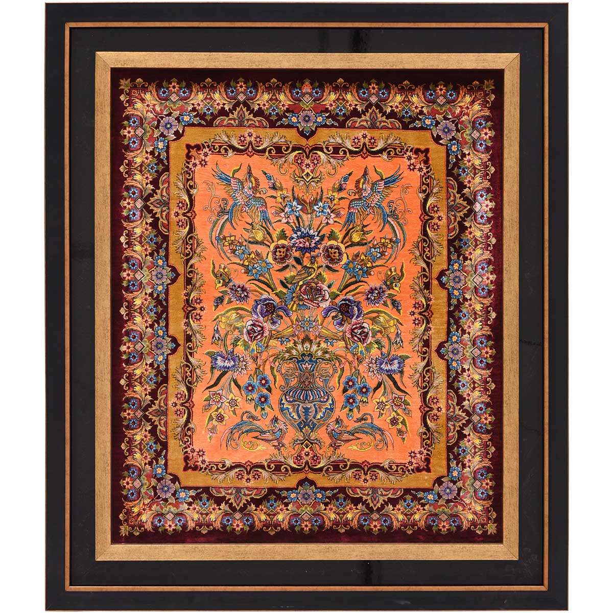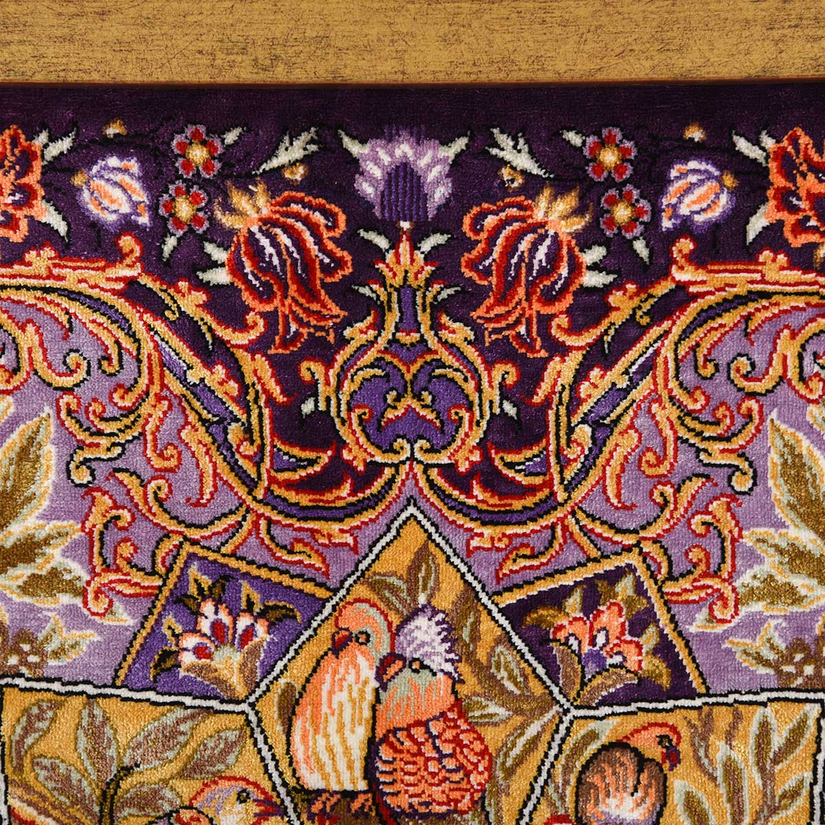 تابلو فرش قم 60 رج چله ابریشم گل و مرغ 10215 کد: 4-28841