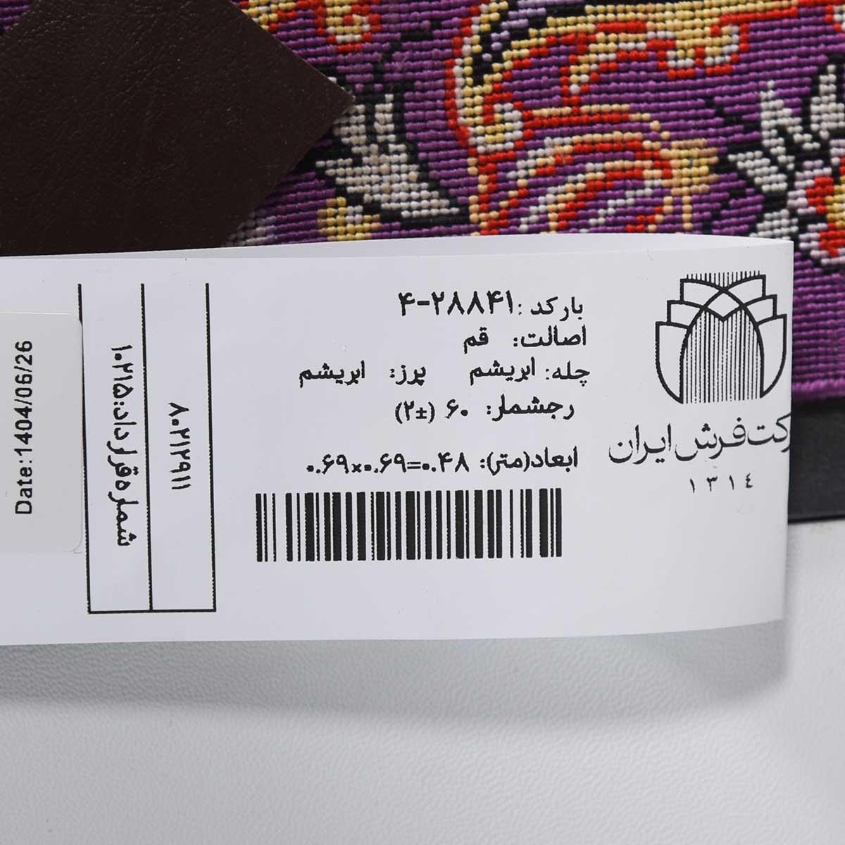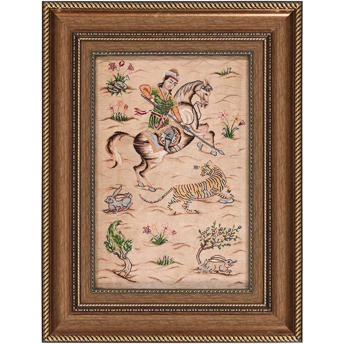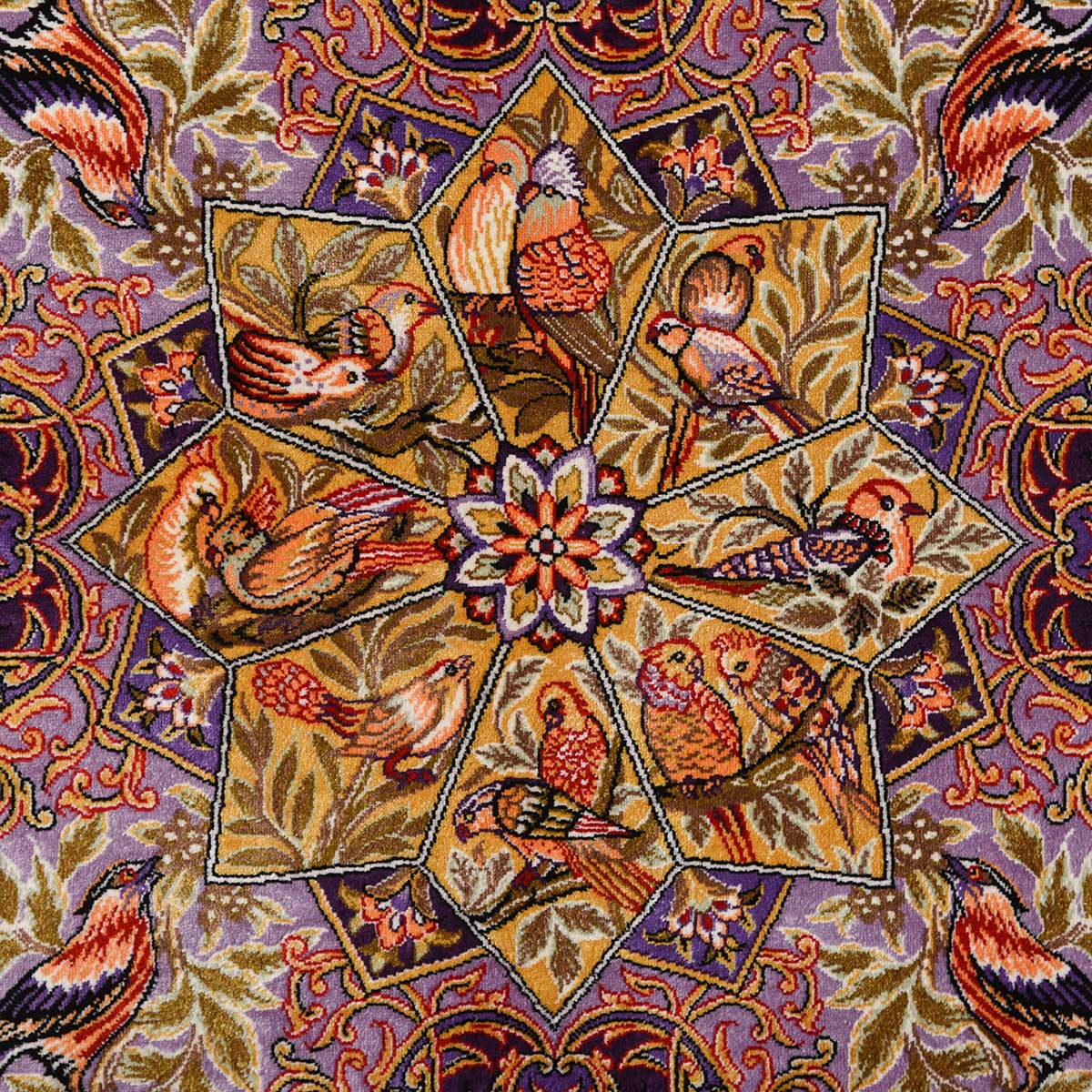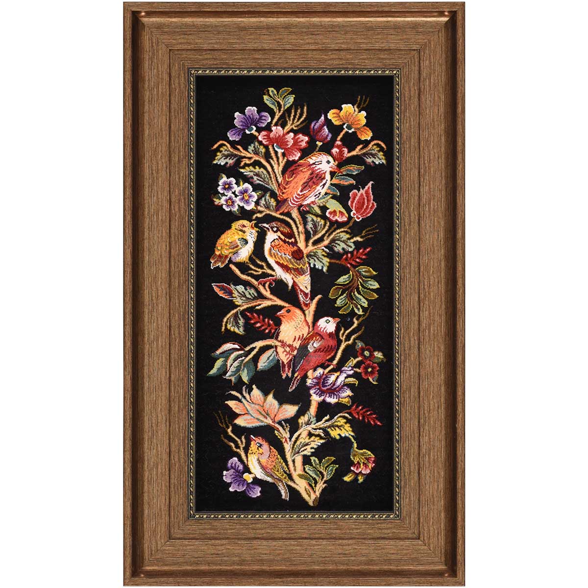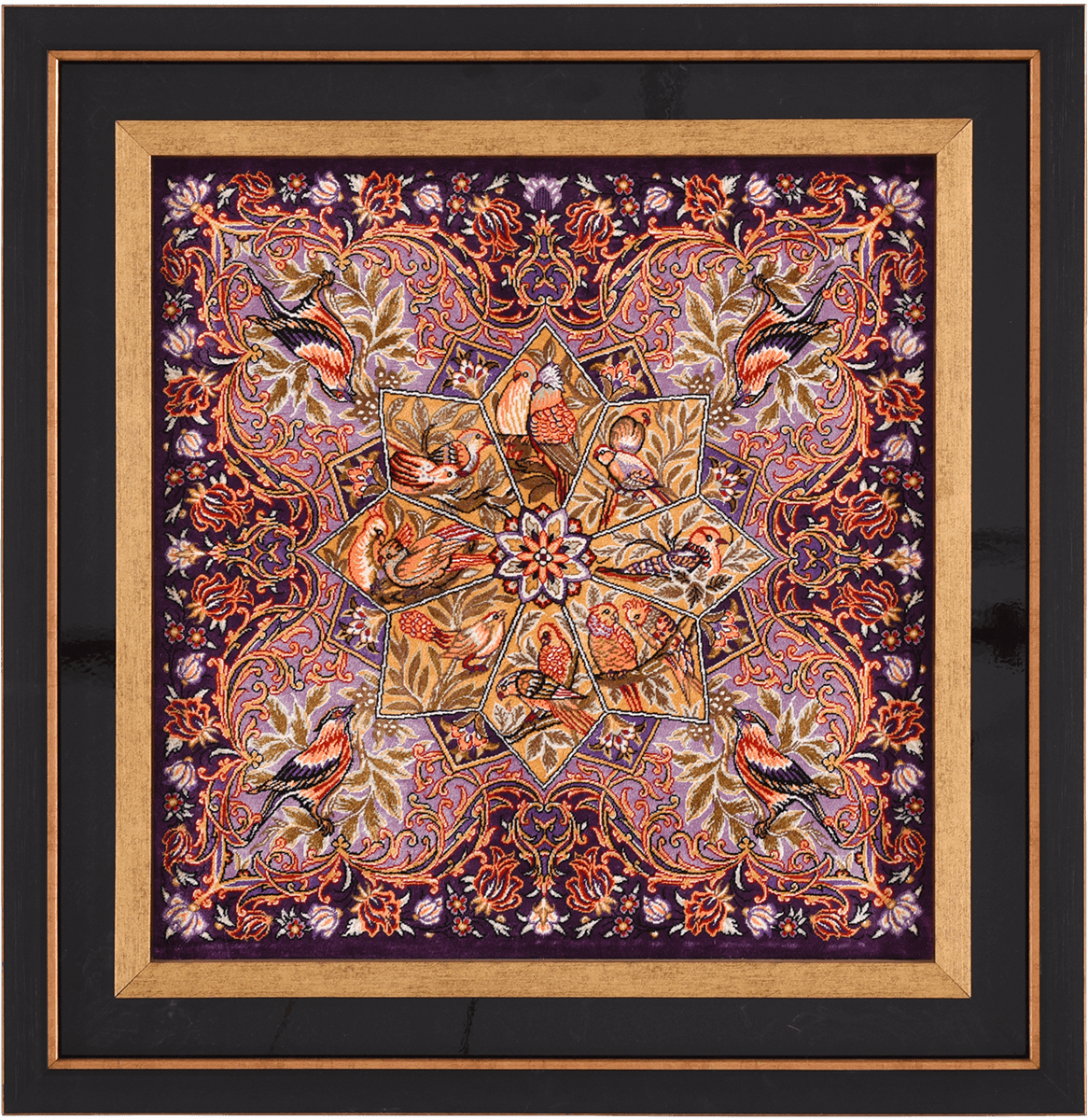 تابلو فرش قم 60 رج چله ابریشم گل و مرغ 10215 کد: 4-28841