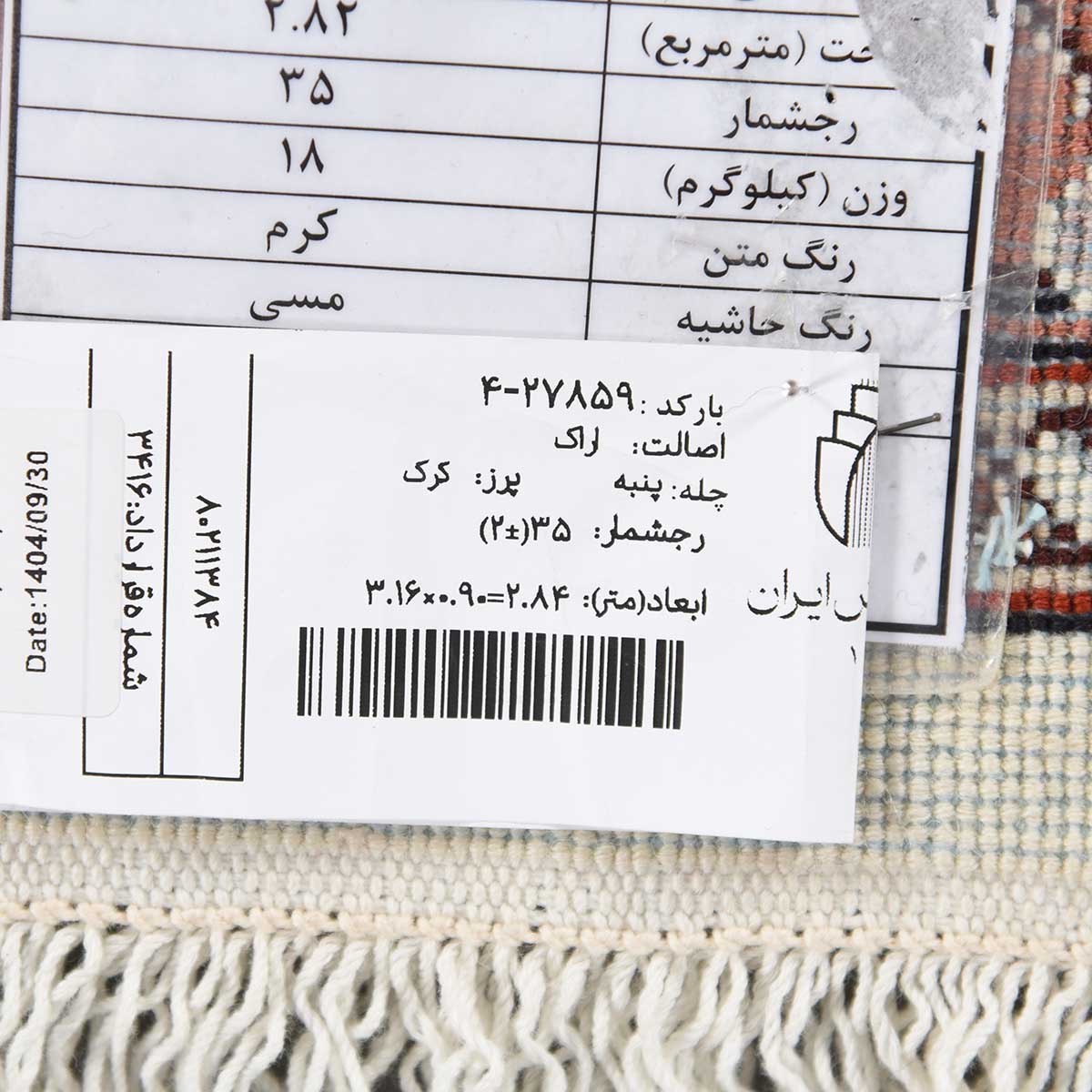 فرش دستباف اراک 35 رج قواره کناره کد: 4-27859