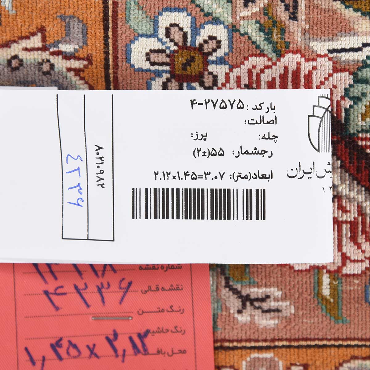 فرش دستباف اصفهان 55 رج قواره قالیچه کد: 4-27575