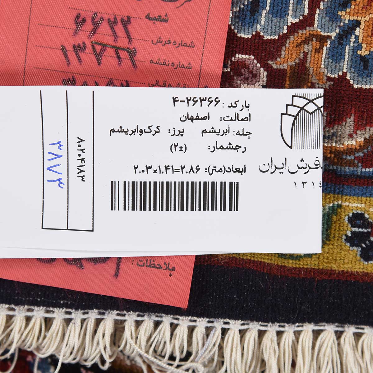 فرش دستباف اصفهان 60 رج قواره قالیچه کد: 4-26366