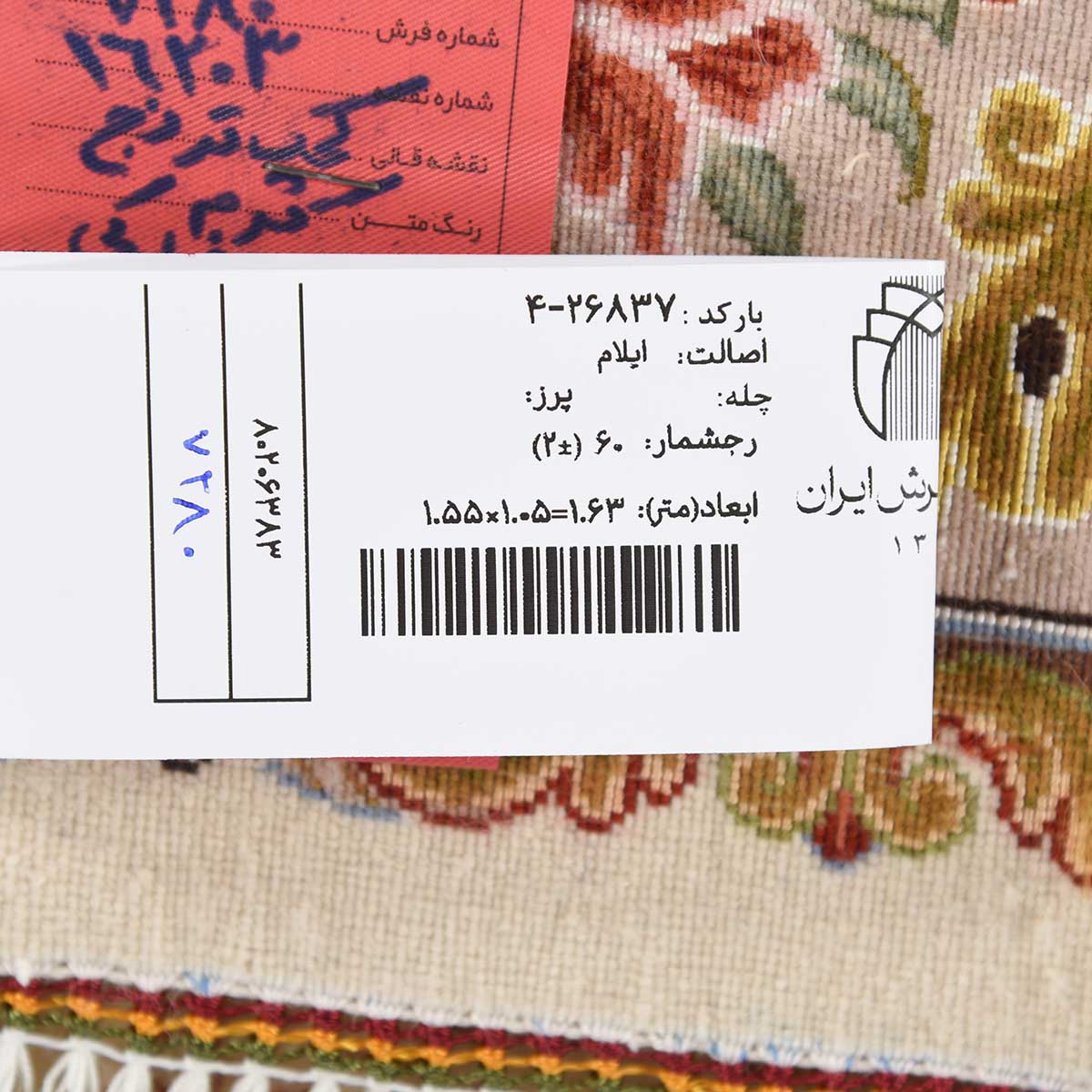فرش دستباف ایلام 60 رج قواره ذرع و نیم کد: 4-26837