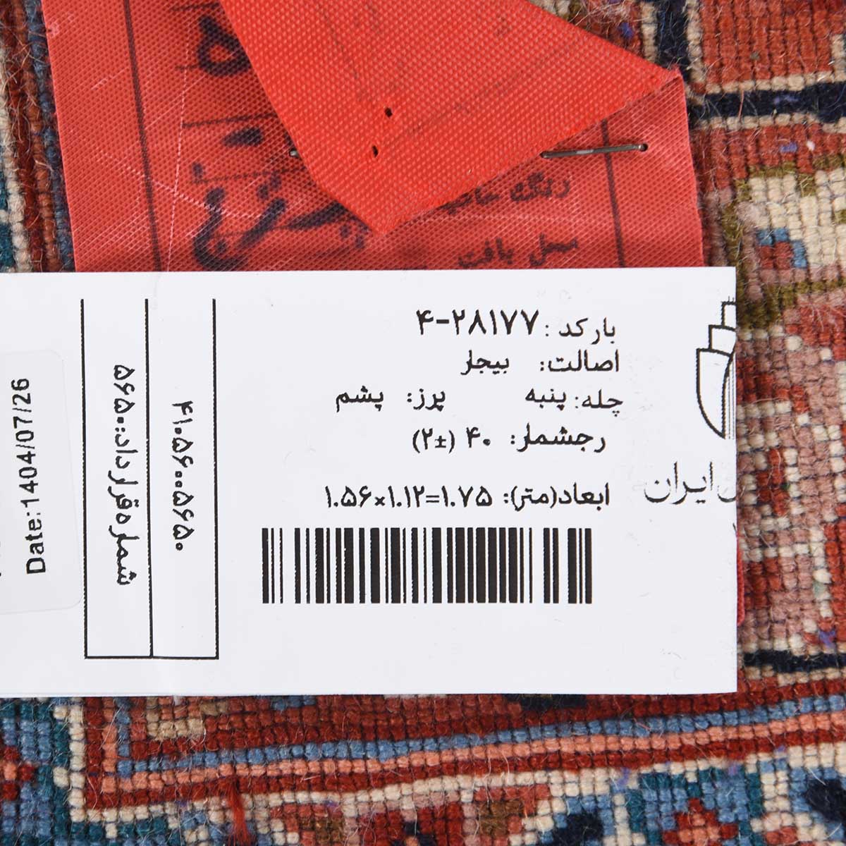 فرش دستباف بیجار 40 رج قواره ذرع و نیم کد: 4-28177