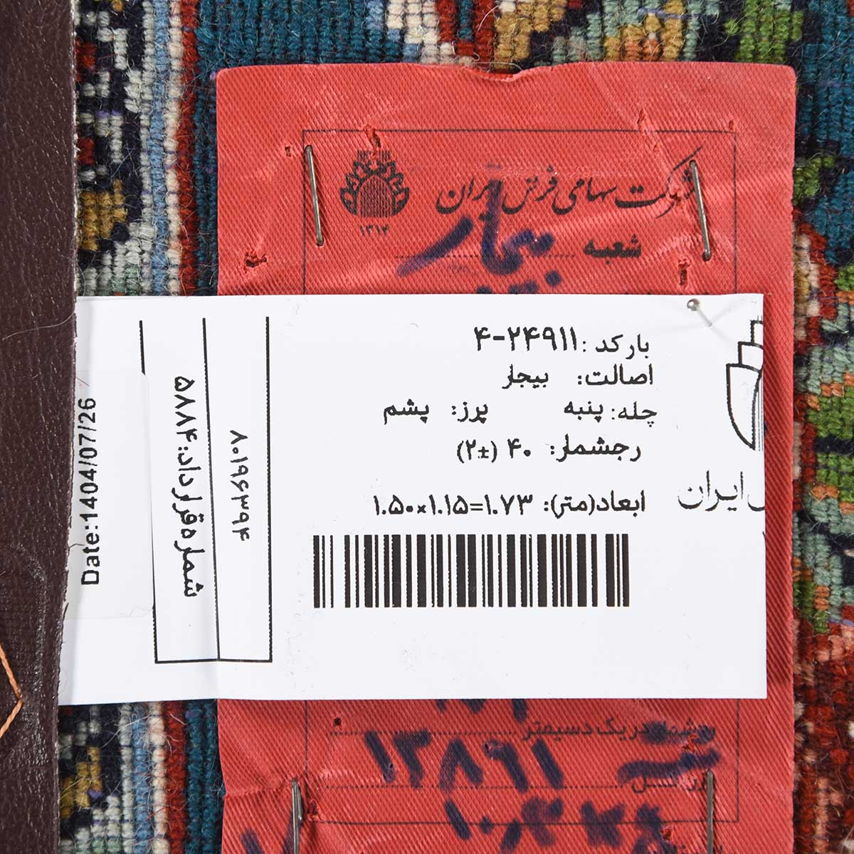 فرش دستباف بیجار 40 رج قواره ذرع و نیم کد: 4-24911