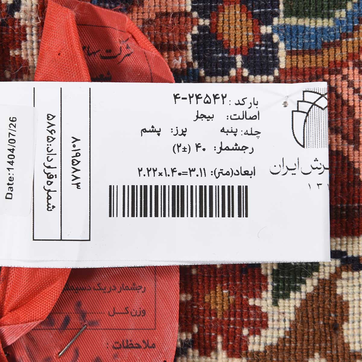 فرش دستباف بیجار 40 رج قواره قالیچه کد: 4-24542
