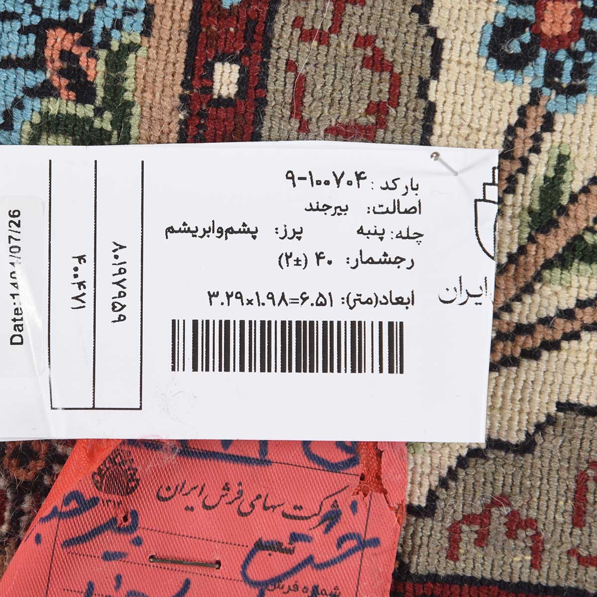 فرش دستباف بیرجند 40 رج قواره 6متری کد: 9-100704