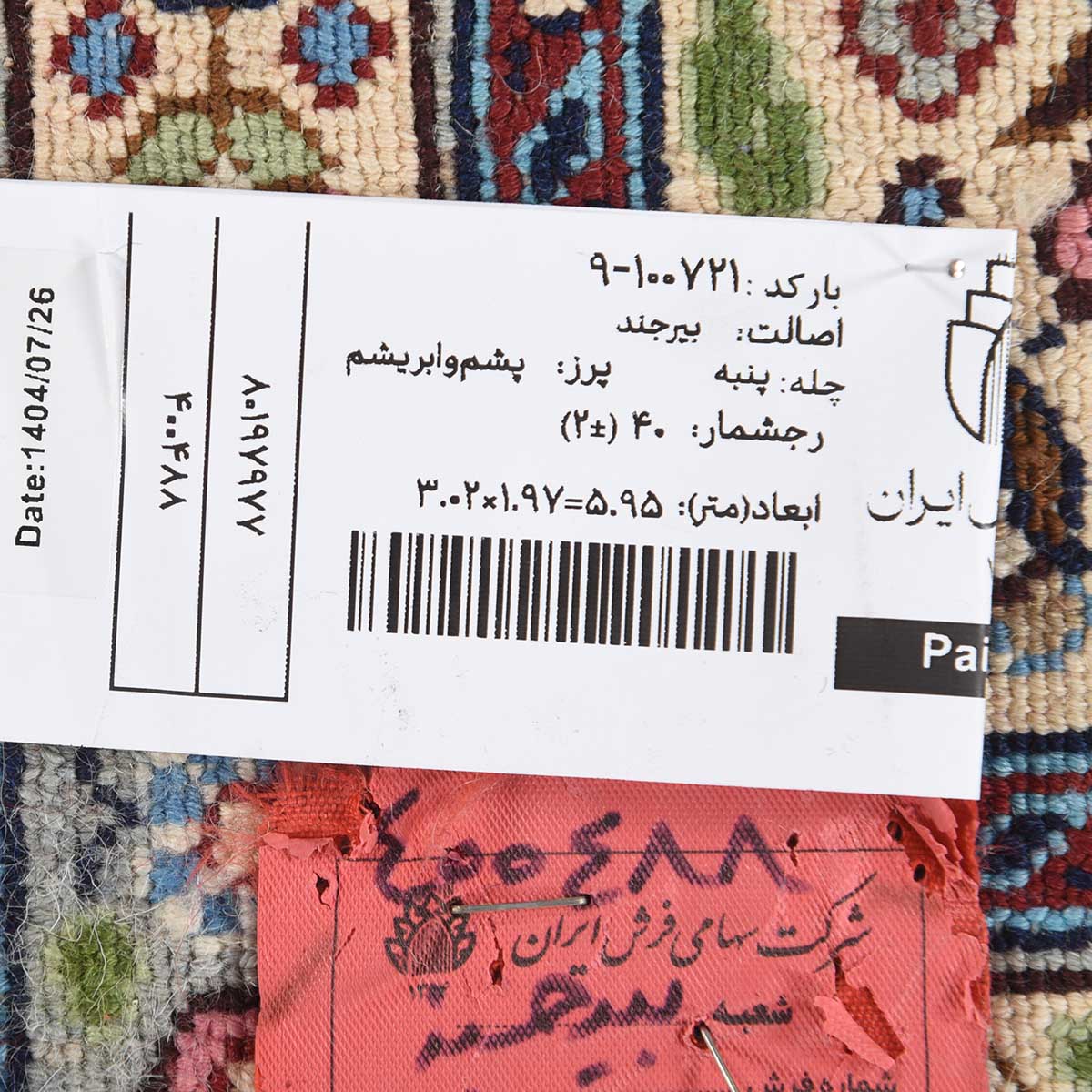 فرش دستباف بیرجند 40 رج قواره 6متری کد: 9-100721