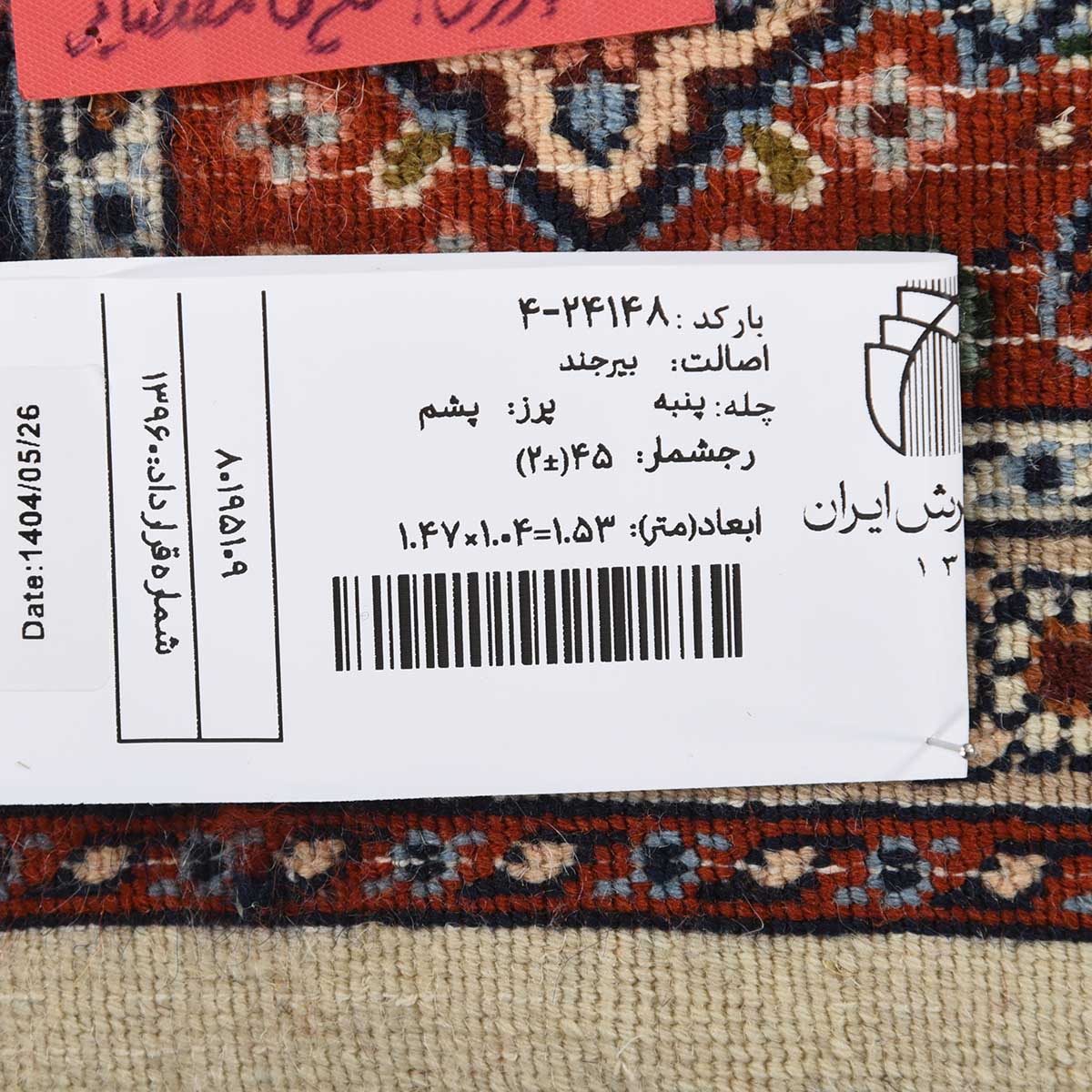 فرش دستباف بیرجند 45 رج قواره ذرع و نیم کد: 4-24148