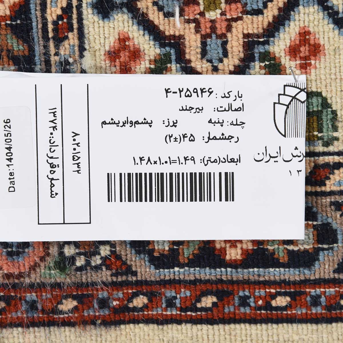 فرش دستباف بیرجند 45 رج قواره ذرع و نیم کد: 4-25946