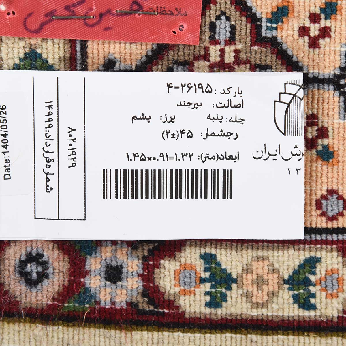 فرش دستباف بیرجند 45 رج قواره ذرع و نیم کد: 4-26195