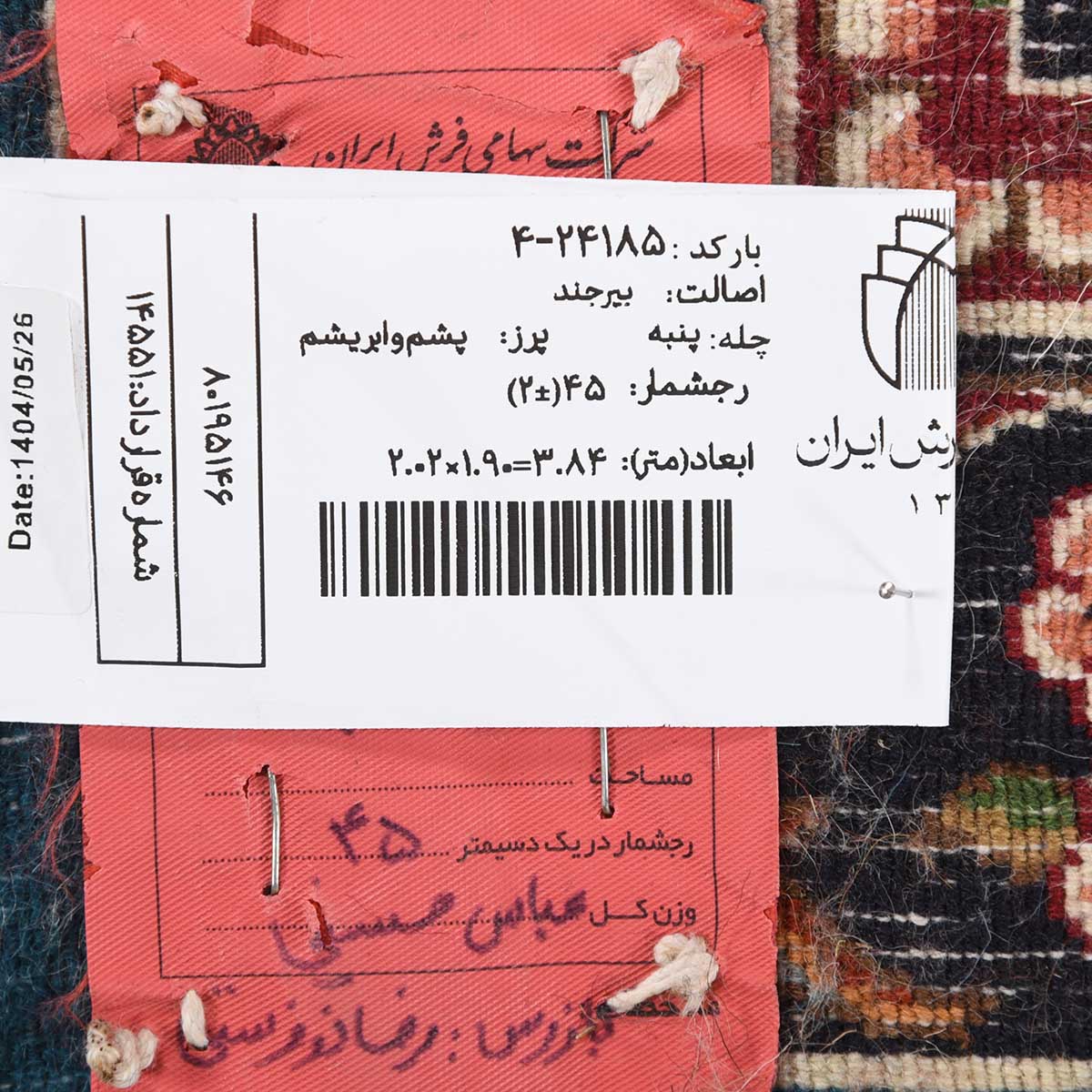 فرش دستباف بیرجند 45 رج قواره مربع کد: 4-24185