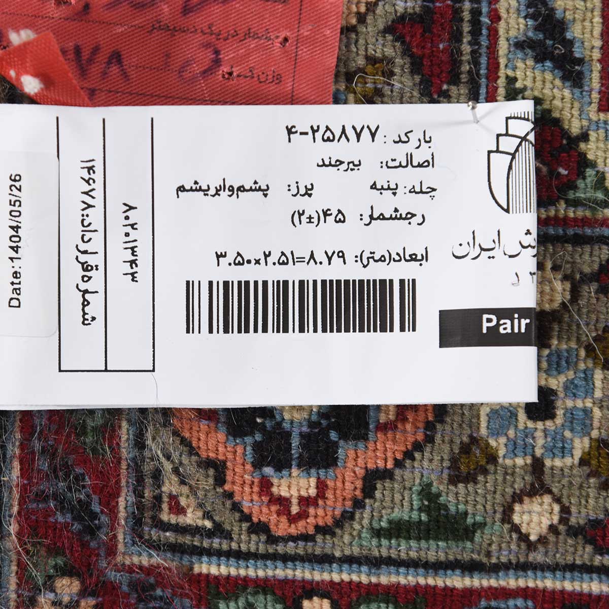 فرش دستباف بیرجند 45 رج قواره 9متری کد: 4-25877