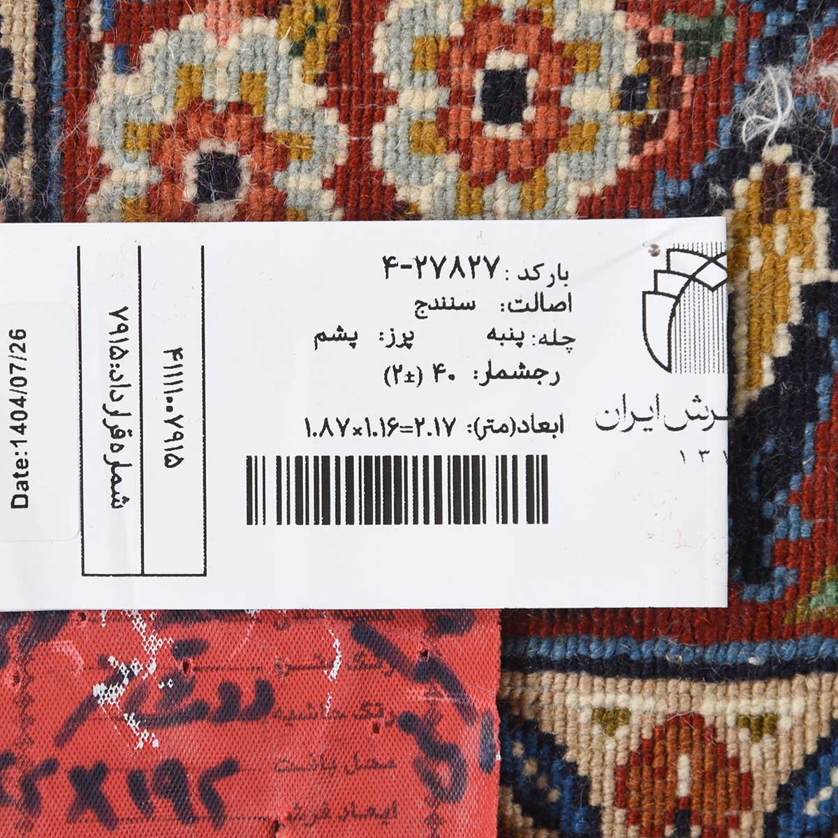 فرش دستباف سنندج 40 رج قواره ذرع و نیم کد: 4-27827
