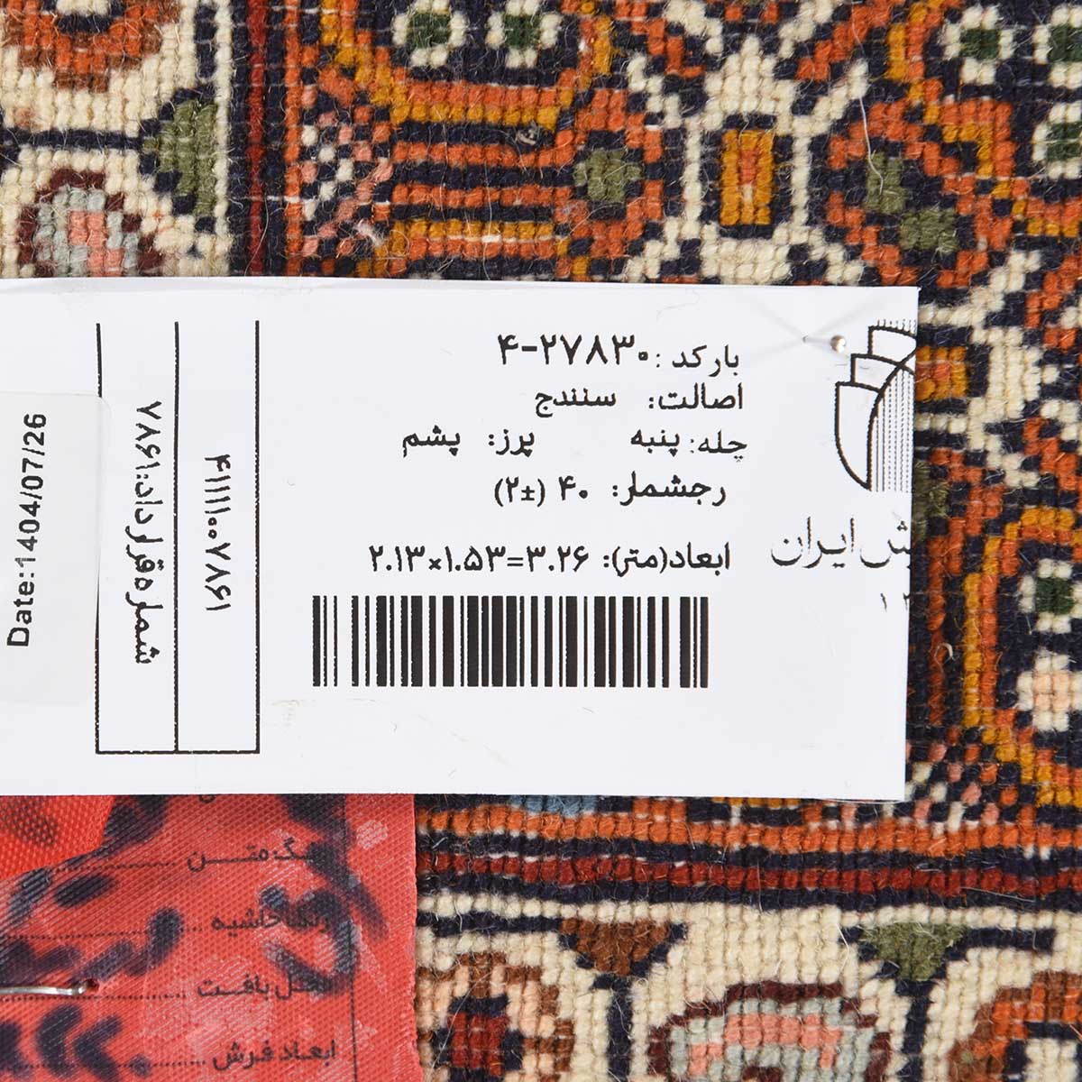 فرش دستباف سنندج 40 رج قواره قالیچه کد: 4-27830