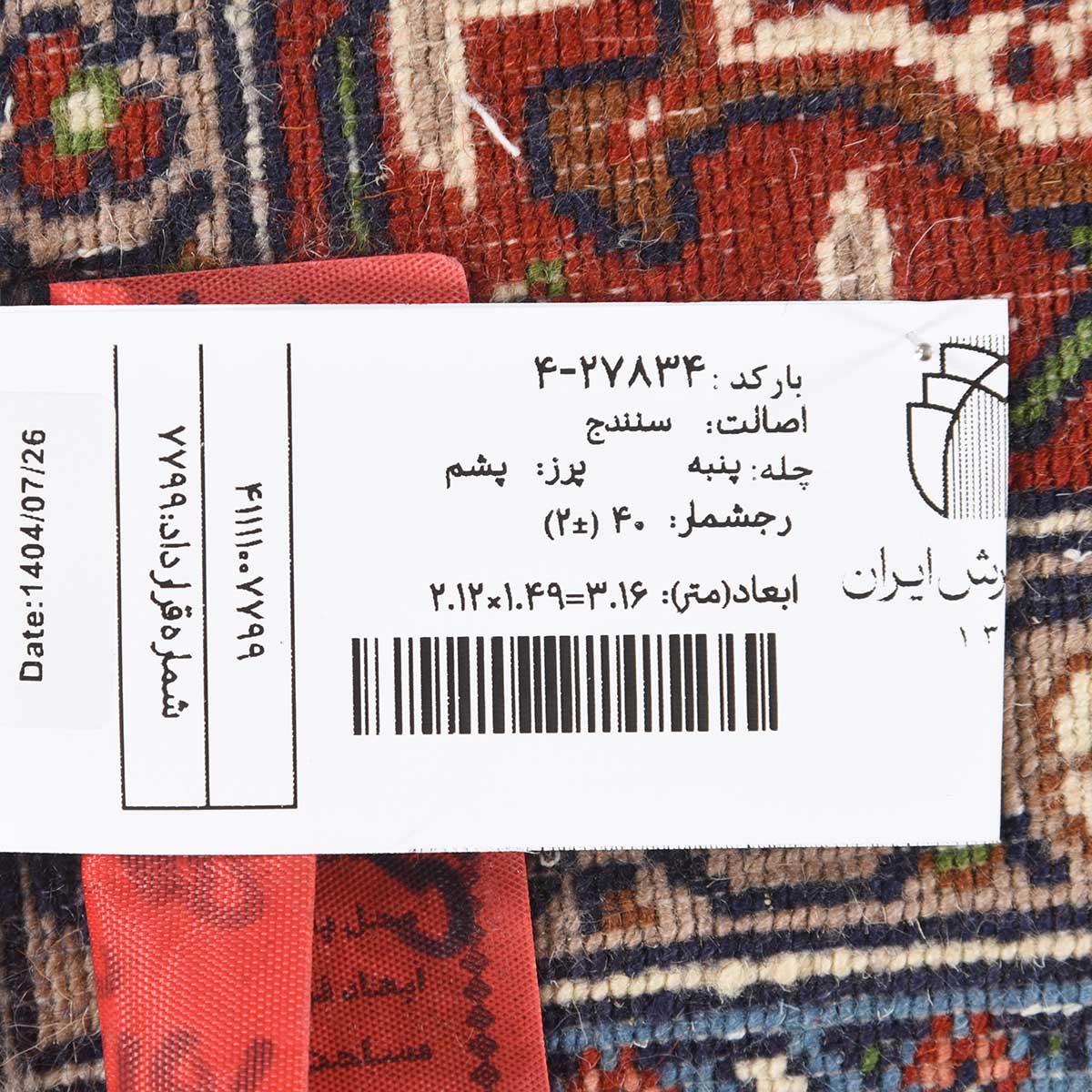 فرش دستباف سنندج 40 رج قواره قالیچه کد: 4-27834