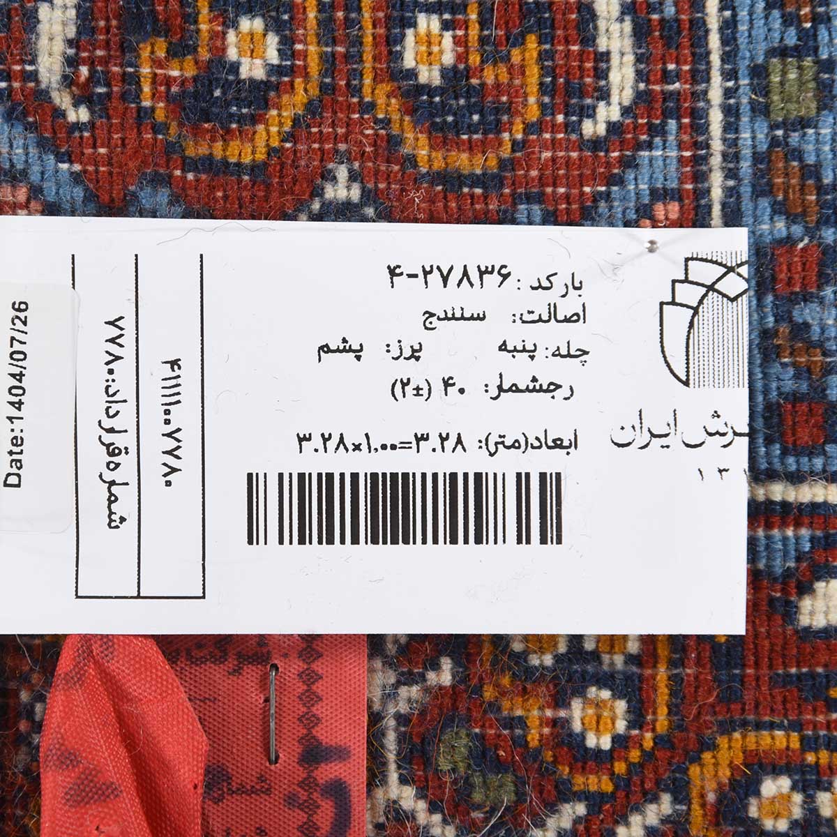 فرش دستباف سنندج 40 رج قواره کناره کد: 4-27836