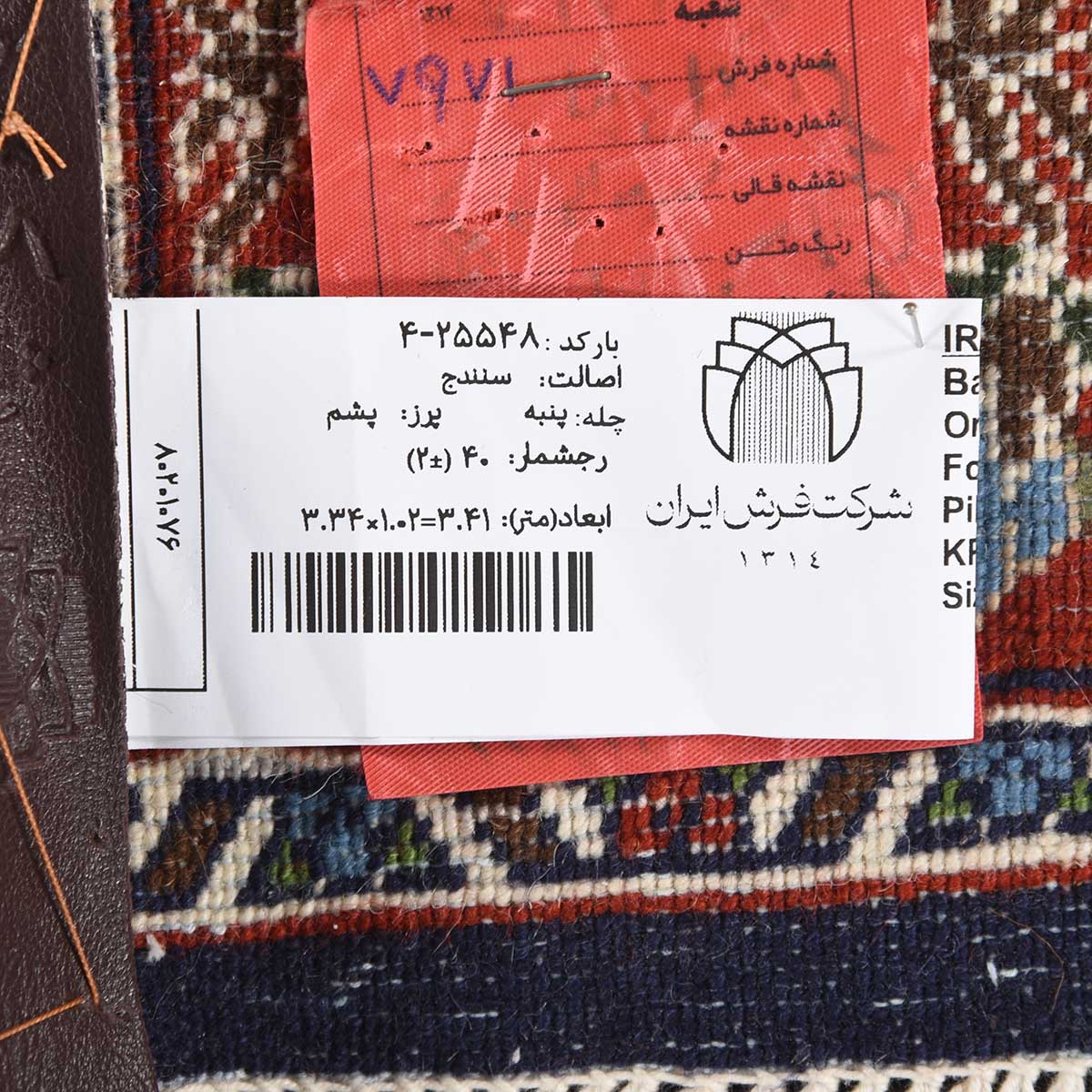 فرش دستباف سنندج 40 رج قواره کناره کد: 4-25548