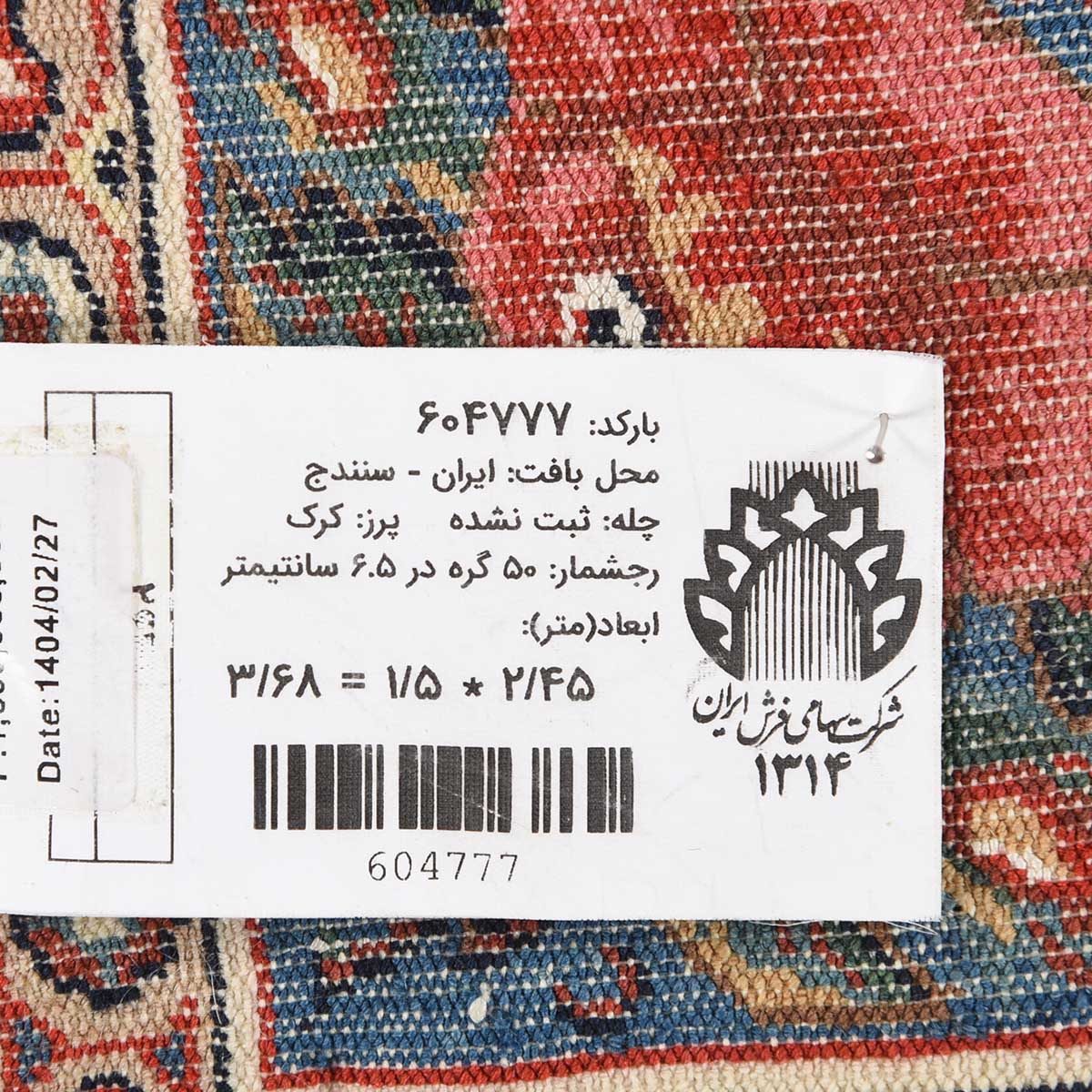 فرش دستباف سنندج 50 رج قواره پرده ای کد: 604777