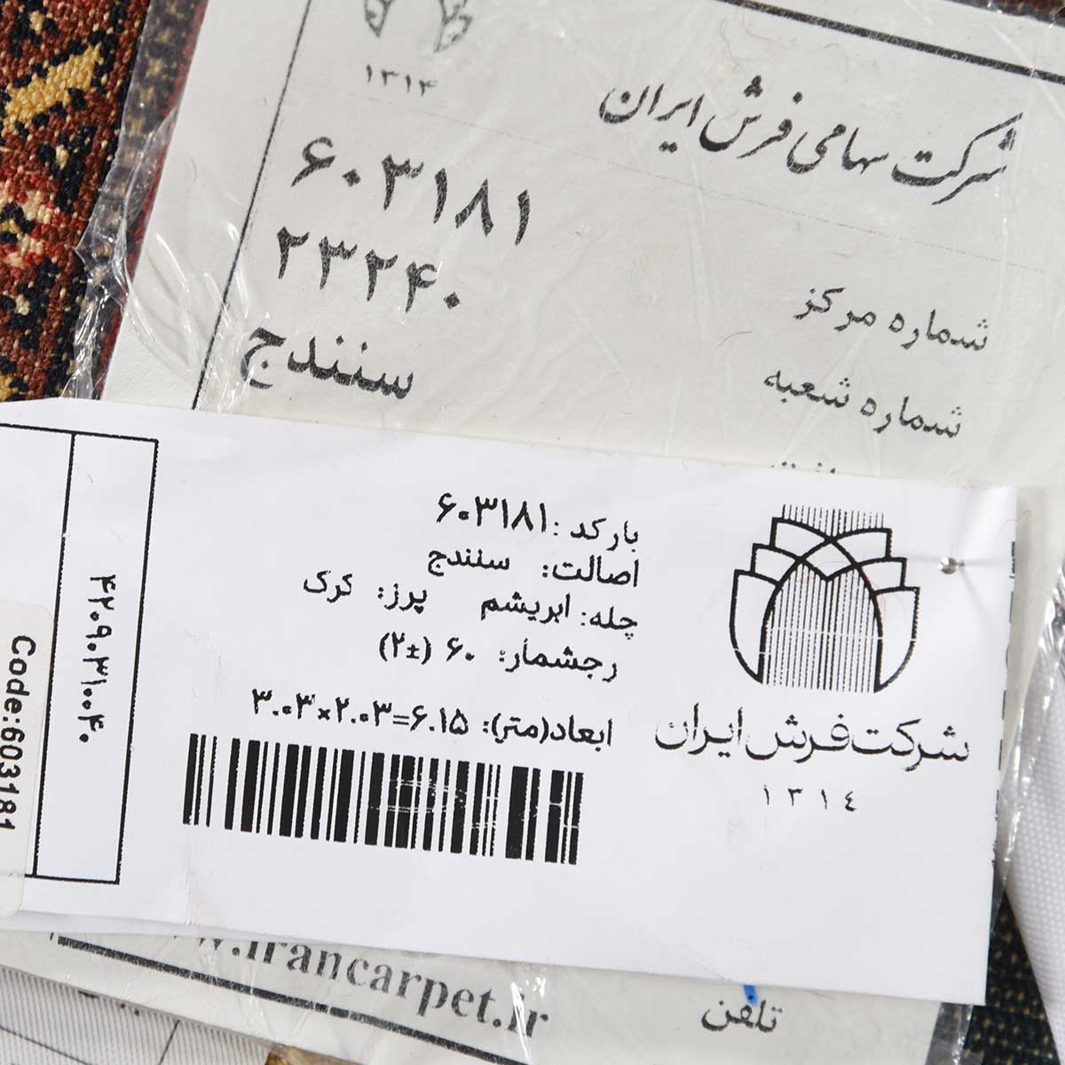 فرش دستباف سنندج 60 رج قواره 6متری کد: 603181