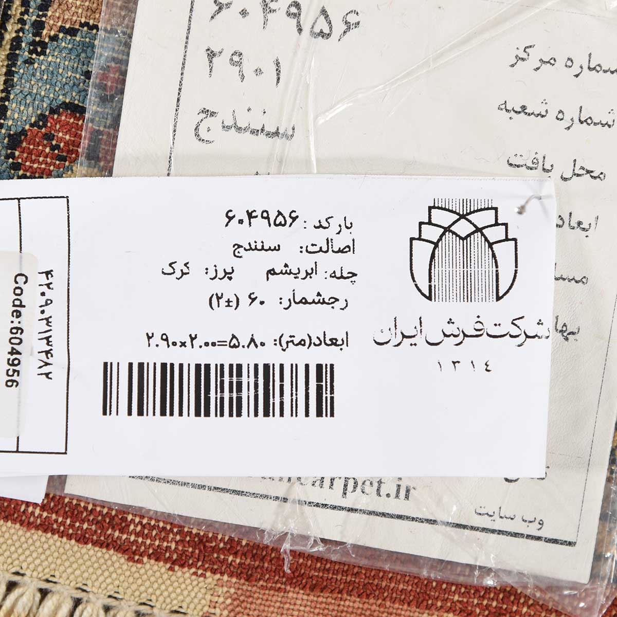 فرش دستباف سنندج 60 رج قواره 6متری کد: 604956