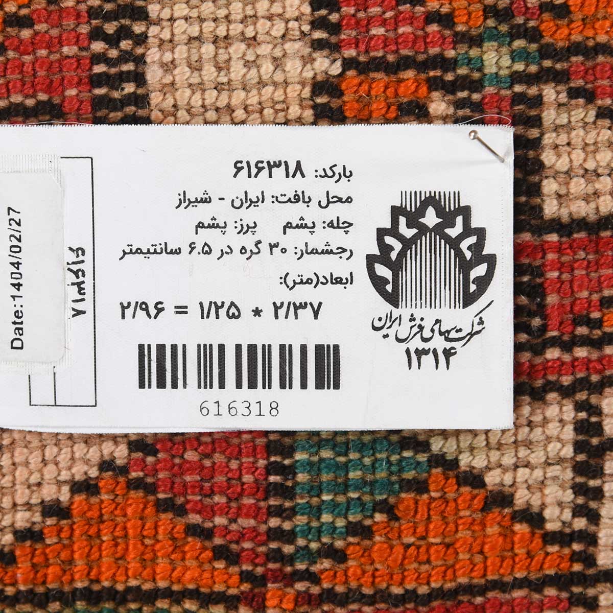 فرش دستباف شیراز 30 رج قواره کناره کد: 616318
