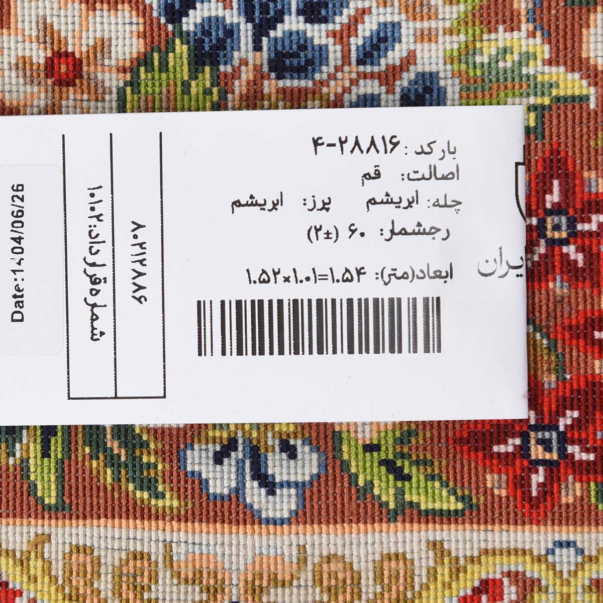 فرش دستباف قم 60 رج قواره ذرع و نیم کد: 4-28816