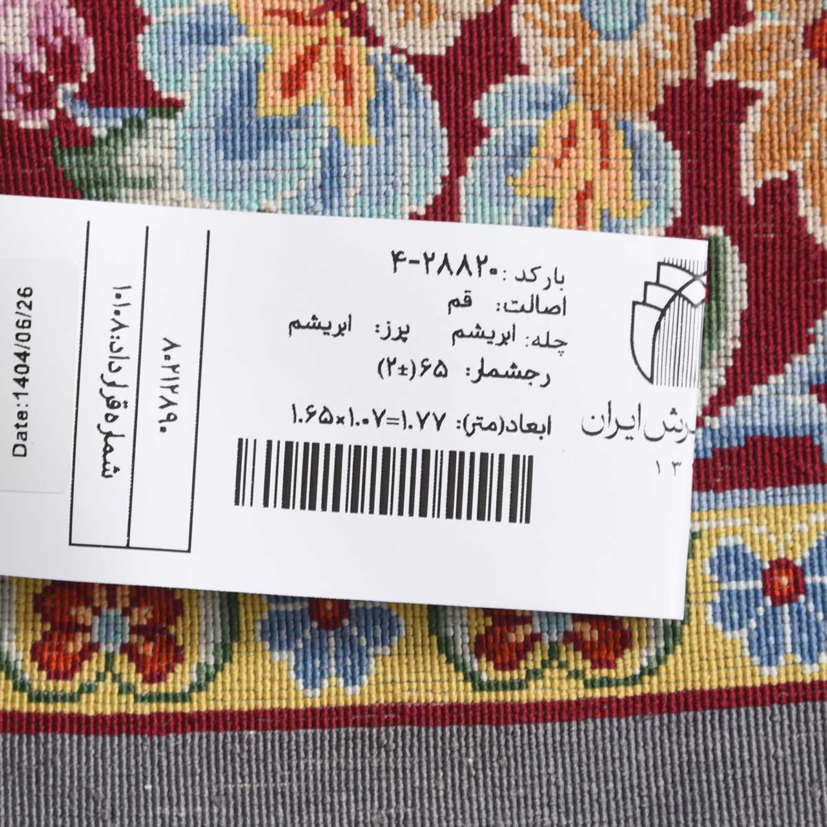 فرش دستباف قم 65 رج قواره ذرع و نیم کد: 4-28820
