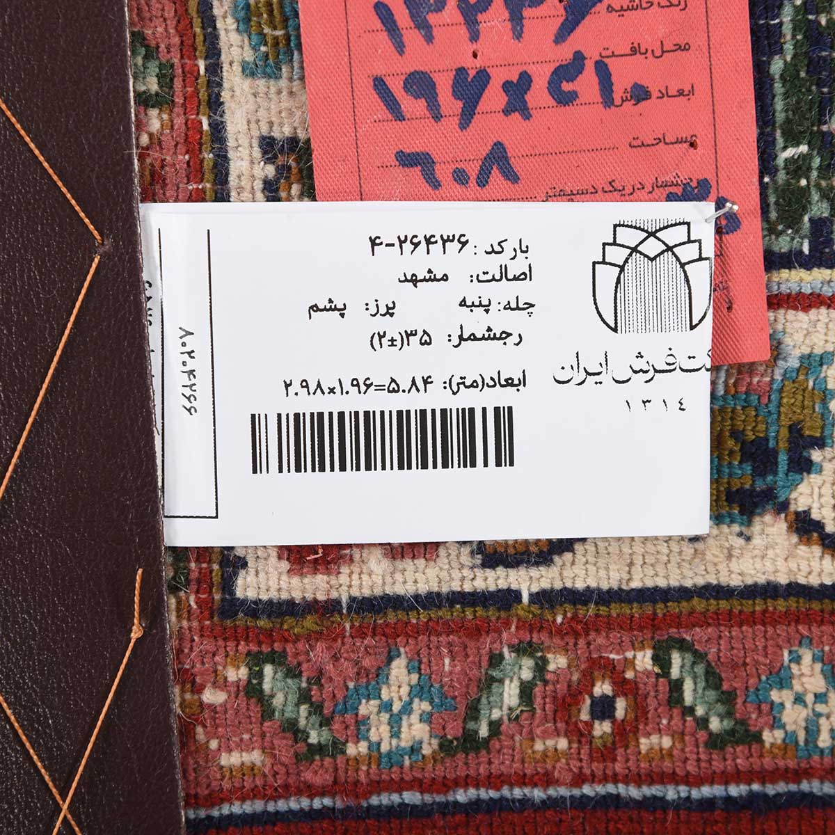 فرش دستباف مشهد 35 رج قواره 6متری کد: 4-26436