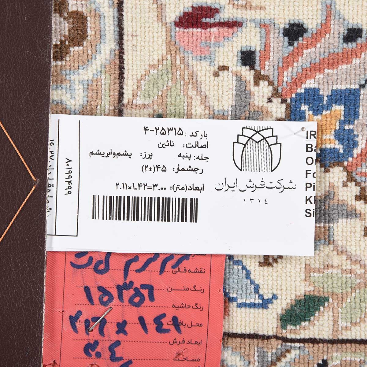 فرش دستباف نائین 45 رج قواره قالیچه کد: 4-25315