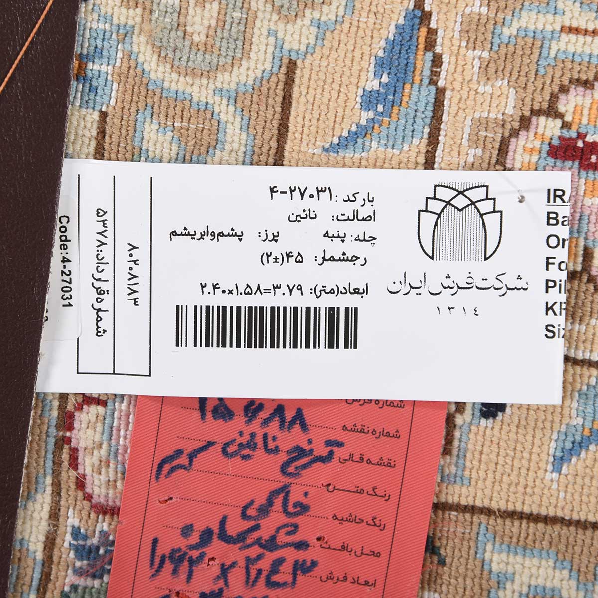 فرش دستباف نائین 45 رج قواره پرده ای کد: 4-27031