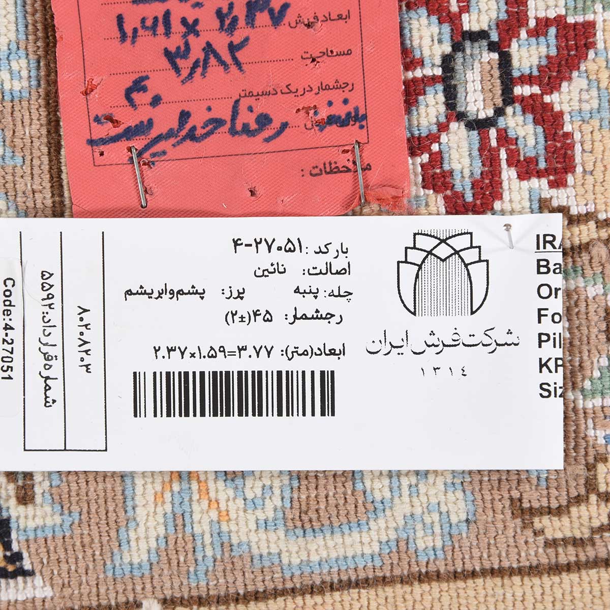 فرش دستباف نائین 45 رج قواره پرده ای کد: 4-27051