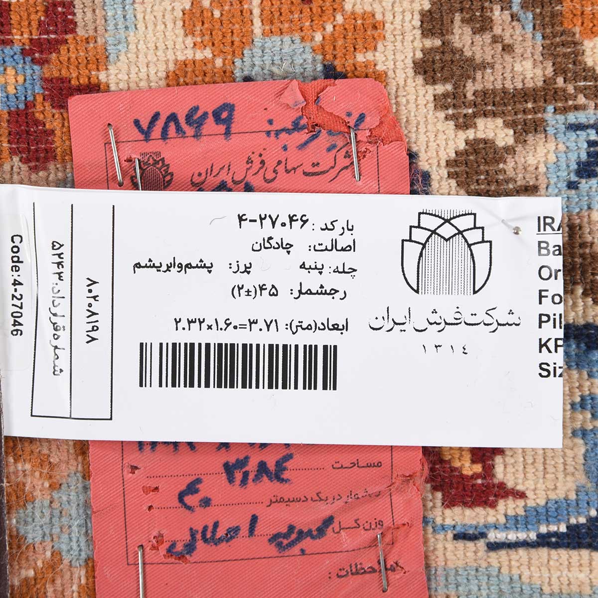 فرش دستباف چادگان 45 رج قواره پرده ای کد: 4-27046