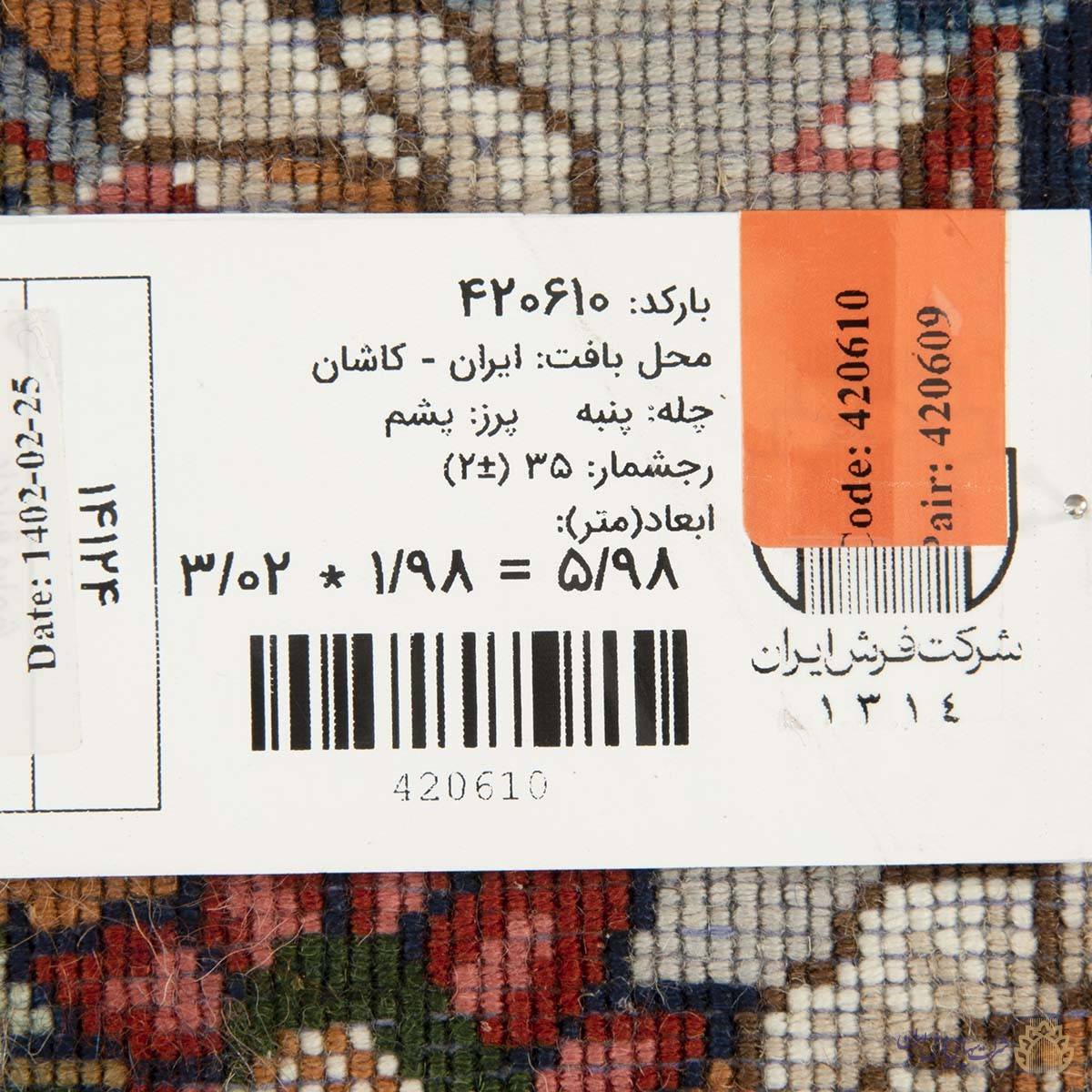 فرش دستباف کاشان 40 رج قواره 6متری کد: 420610
