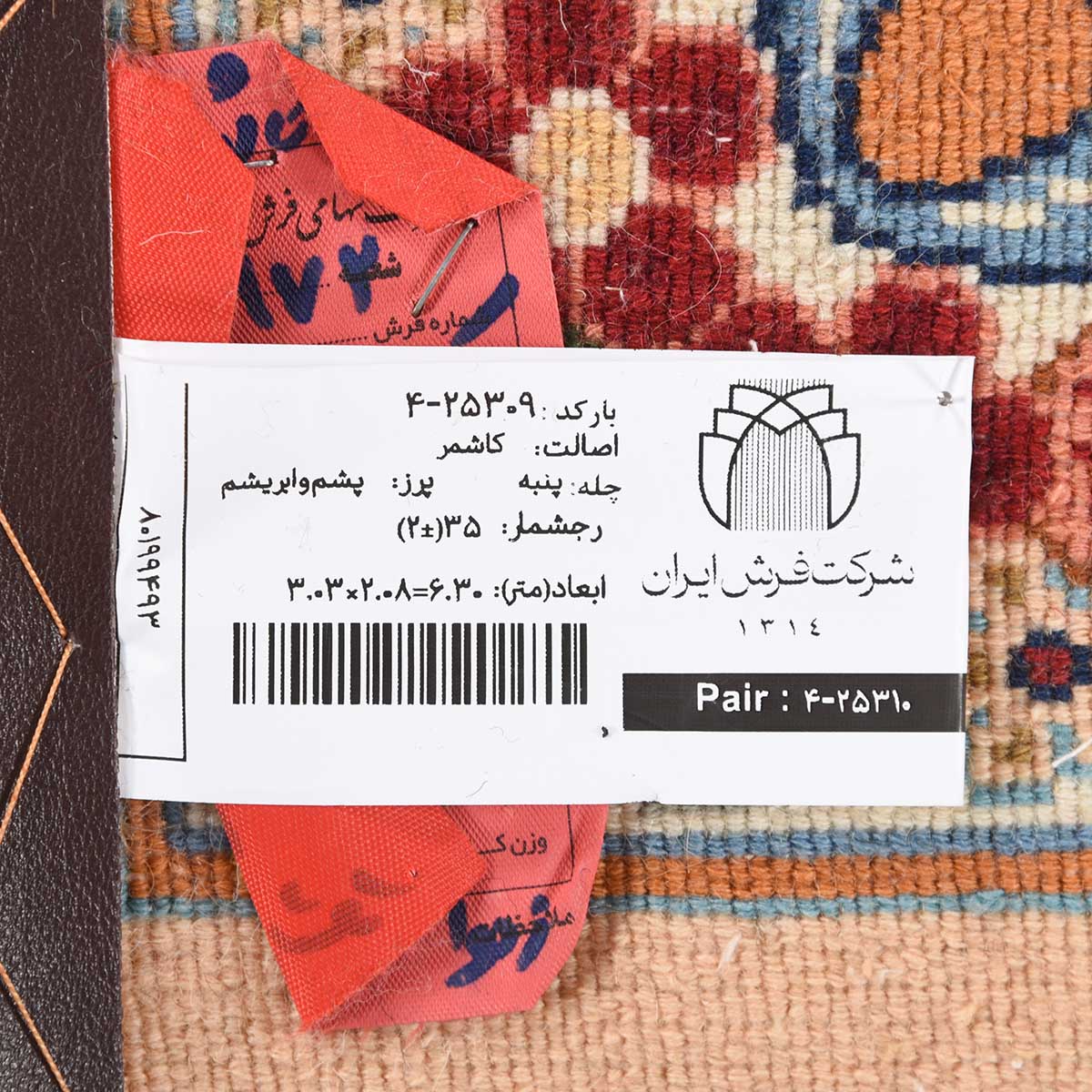 فرش دستباف کاشمر 35 رج قواره 6متری کد: 4-25309