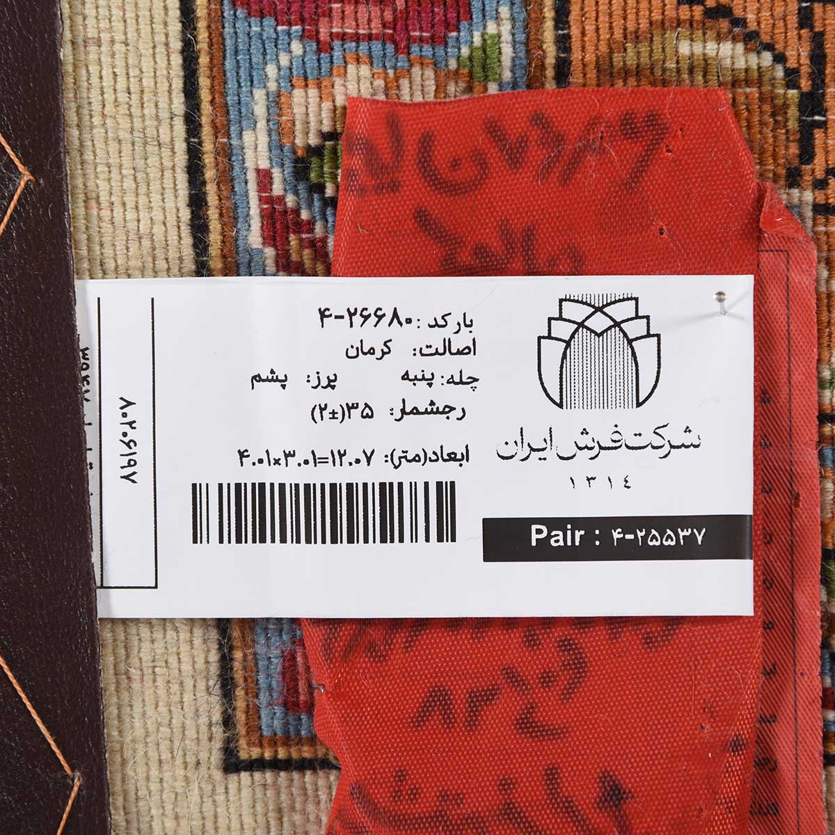 فرش دستباف کرمان 35 رج قواره 12متری کد: 4-26680