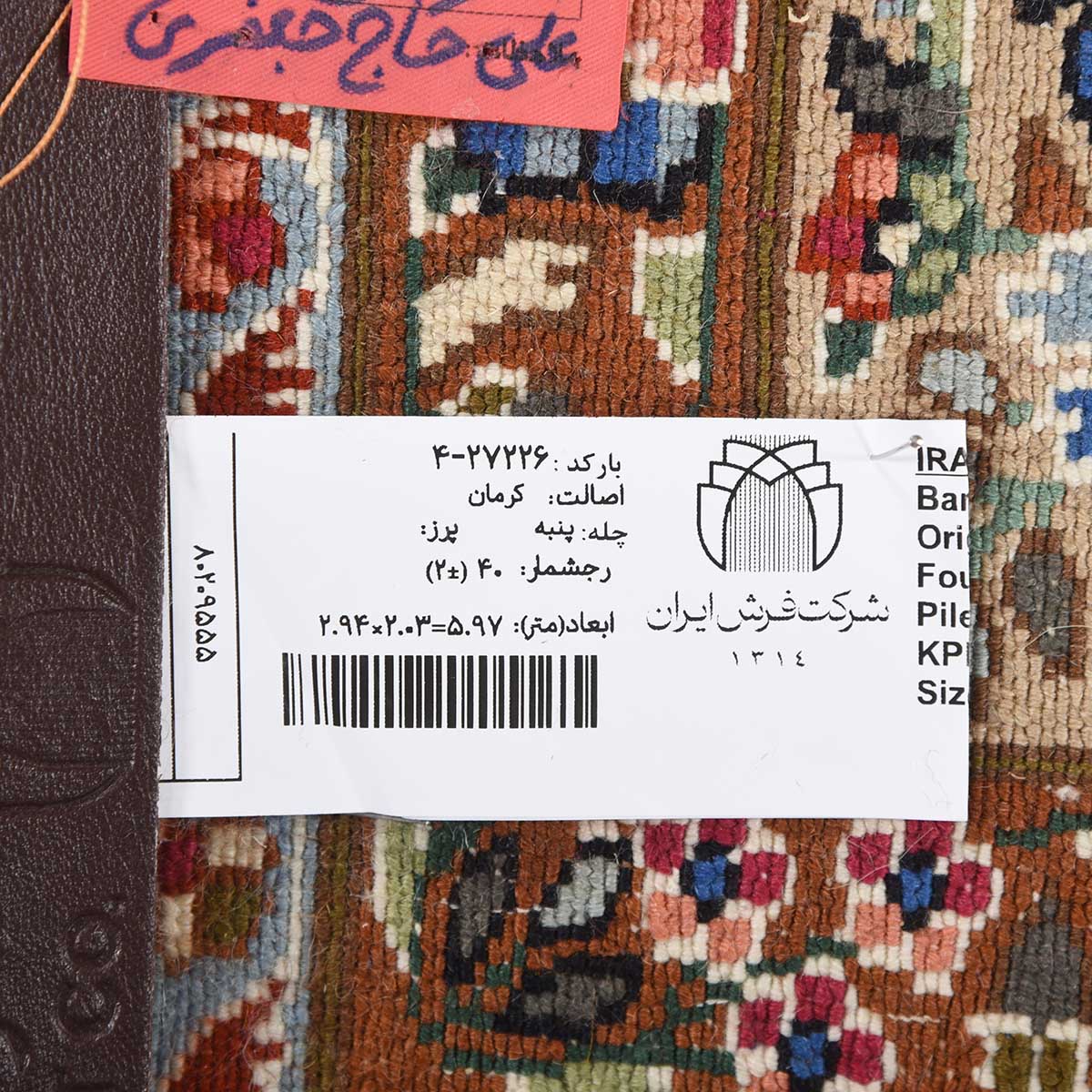 فرش دستباف کرمان 40 رج قواره 6متری کد: 4-27226