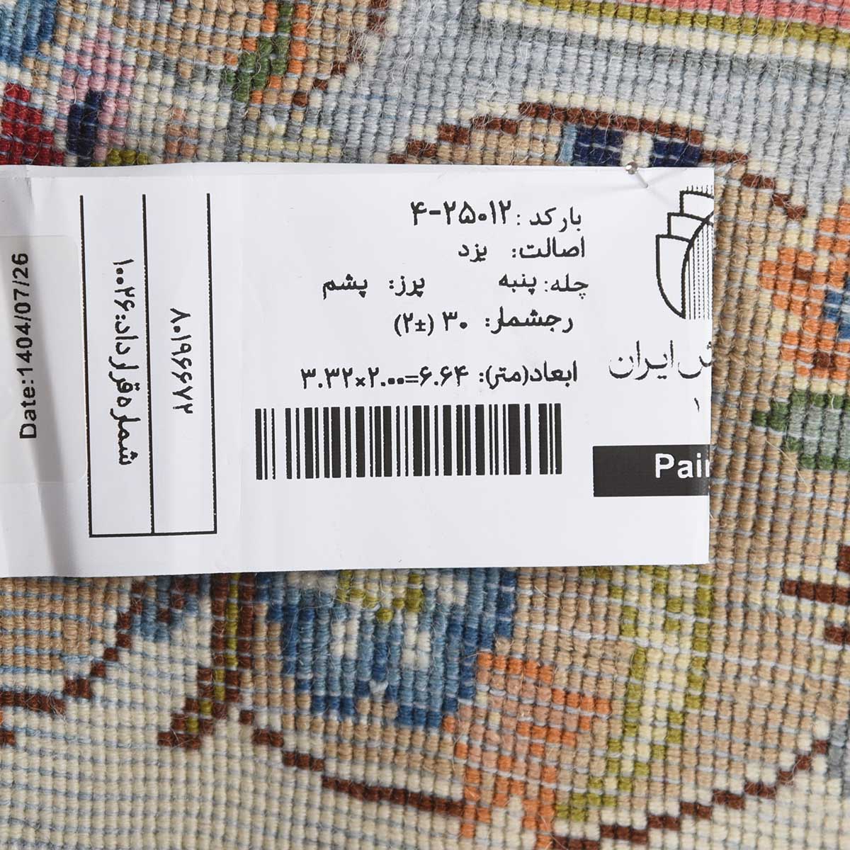 فرش دستباف یزد 30 رج قواره 6متری کد: 4-25012