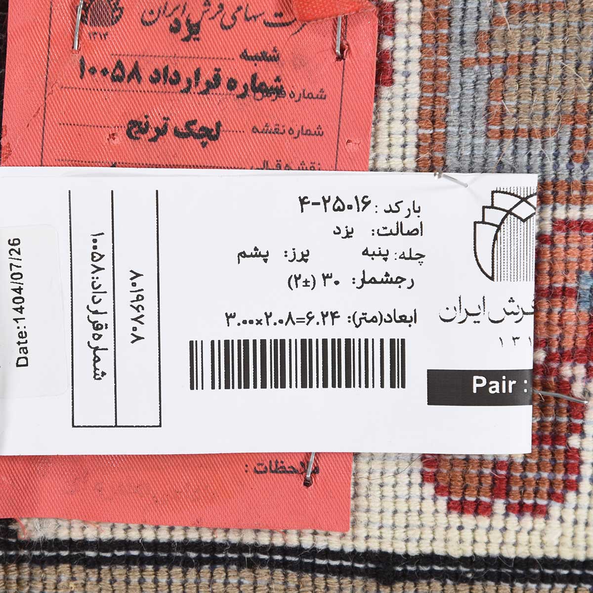 فرش دستباف یزد 30 رج قواره 6متری کد: 4-25016