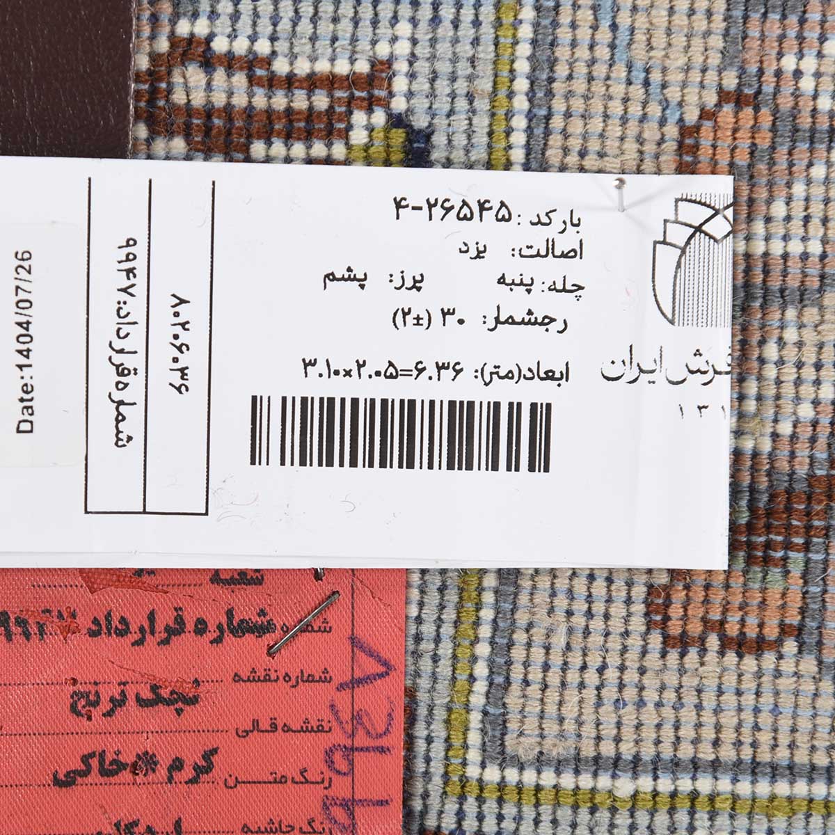 فرش دستباف یزد 30 رج قواره 6متری کد: 4-26545