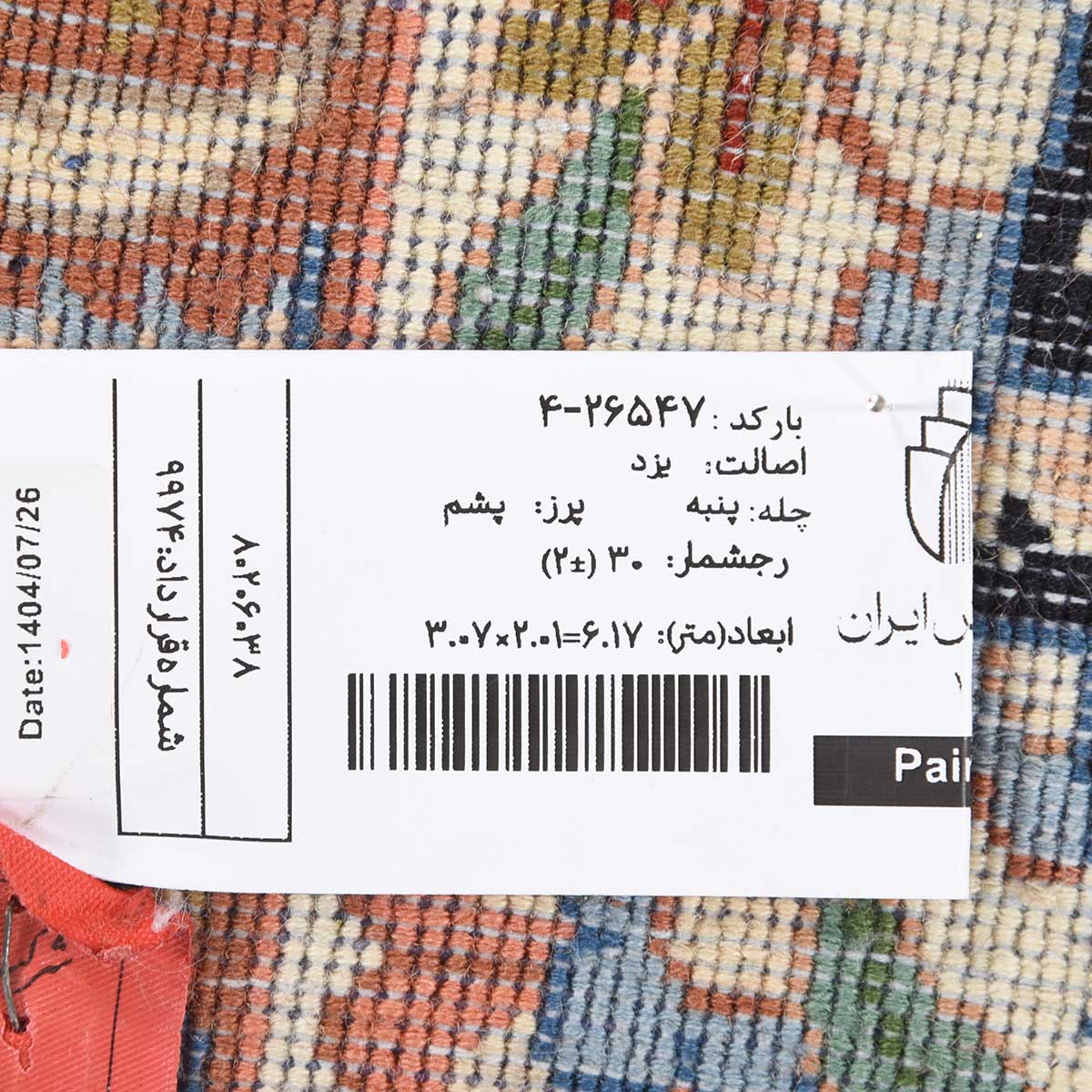 فرش دستباف یزد 30 رج قواره 6متری کد: 4-26547