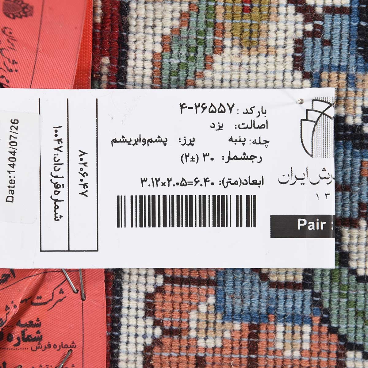 فرش دستباف یزد 30 رج قواره 6متری کد: 4-26557