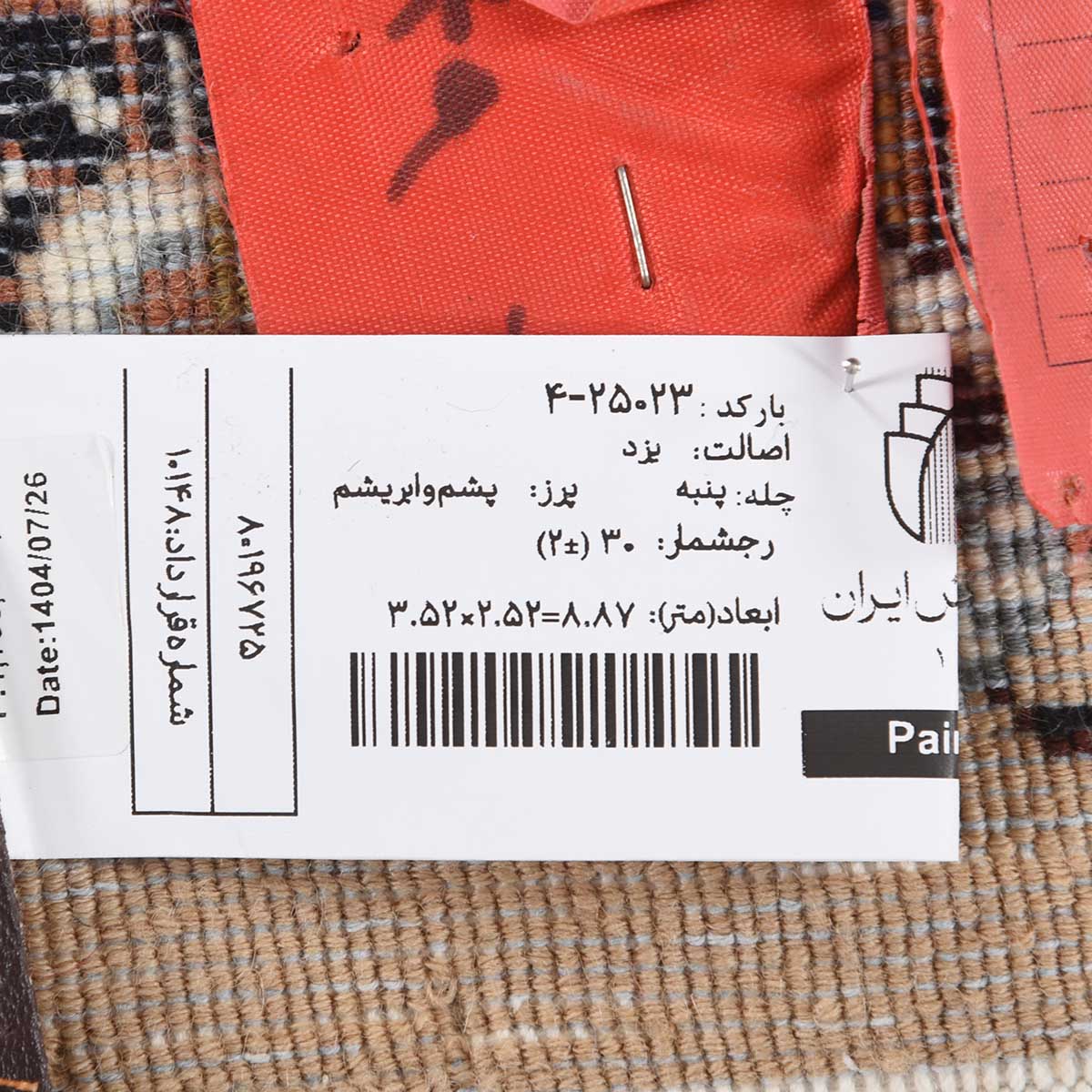 فرش دستباف یزد 30 رج قواره 9متری کد: 4-25023