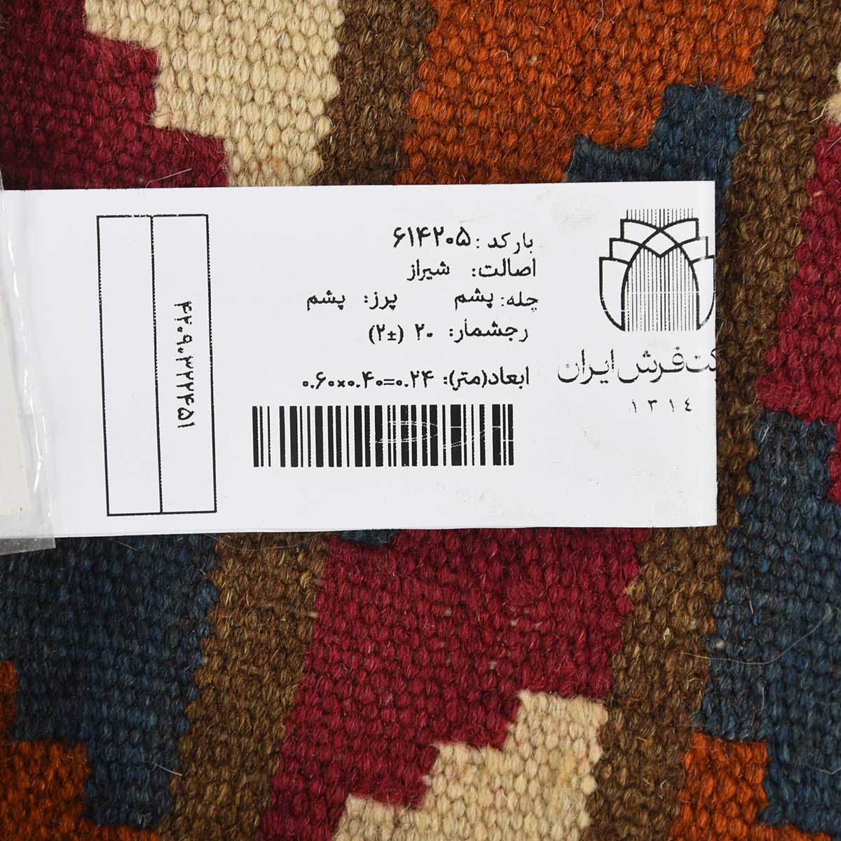 گلیم دستباف شیراز قواره پشتی کد: 614205