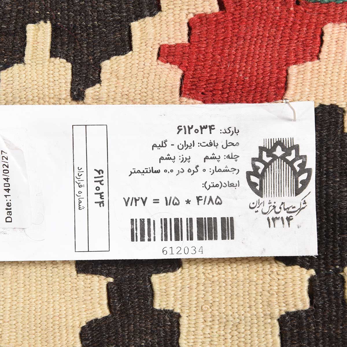گلیم دستباف شیراز قواره 6متری کد: 612034